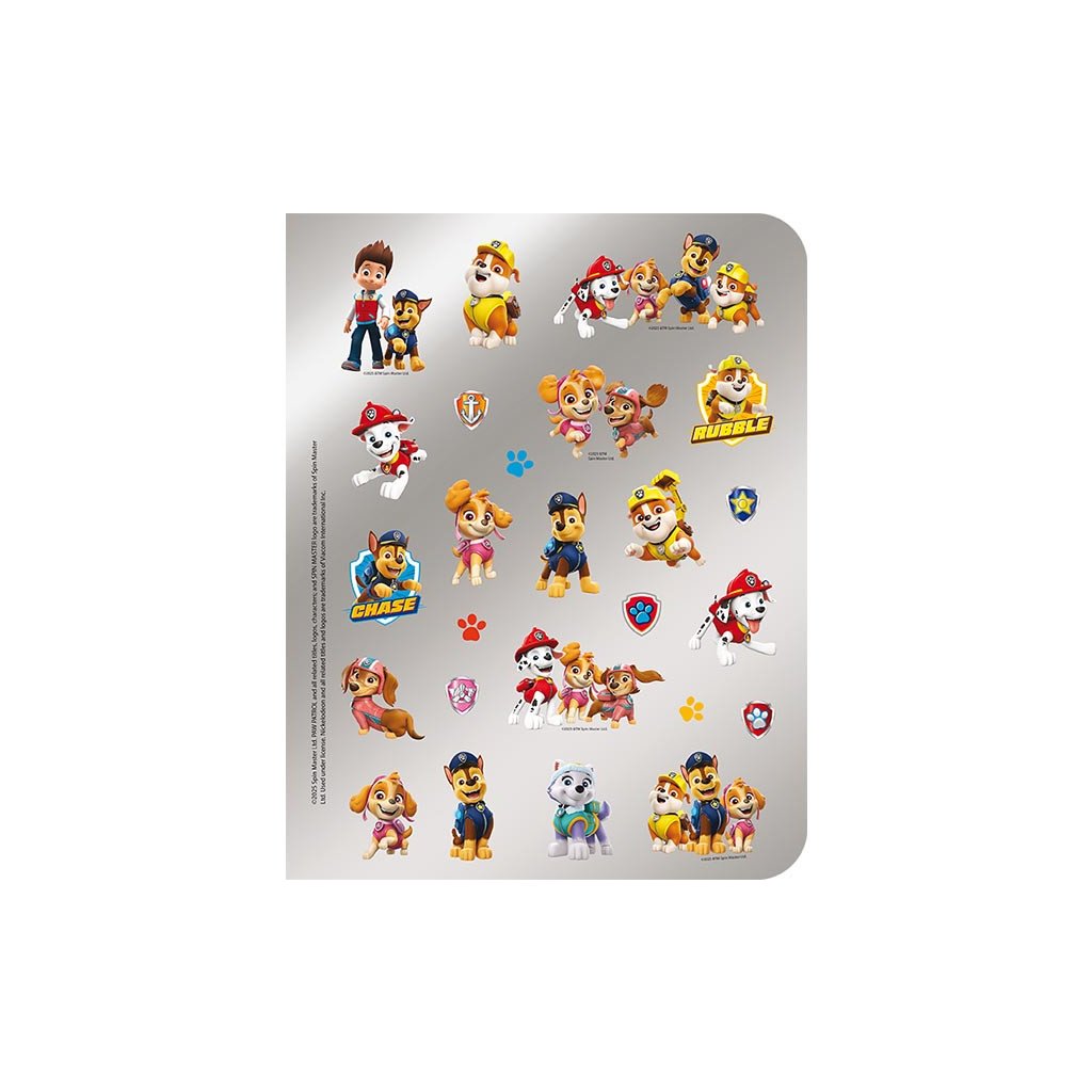 100 samolepek s omalovánkami Tlapková patrola, obsahují 24 stran plných omalovánek a aktivit a více než 100 metalických a papírových samolepek pro dolepení a ozdobení. Má rozměry 275 X 216 mm. Cena je za kus. Vhodné pro děti ve věku 3+ let.Doplňkové parametry