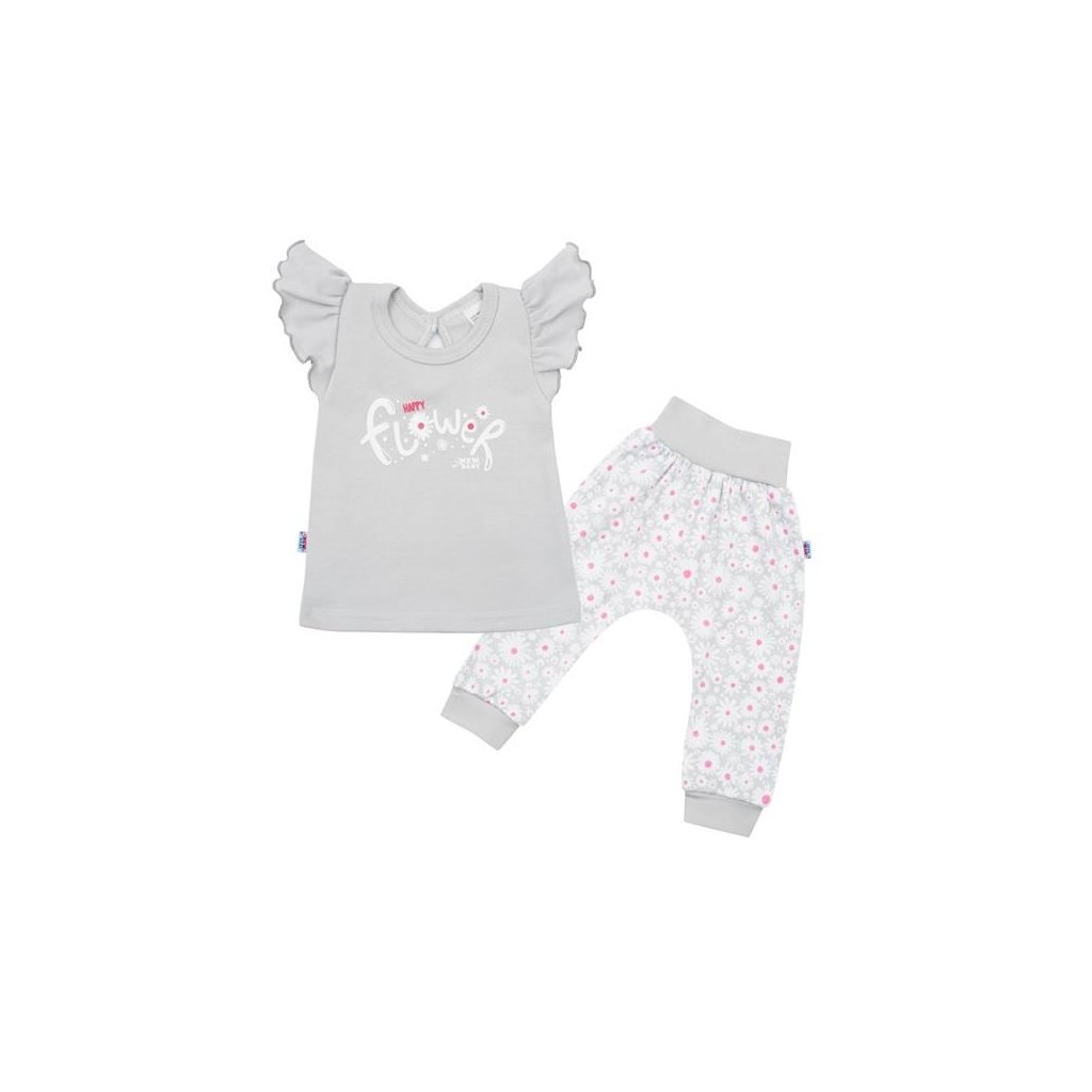 2-dílná kojenecká bavlněná souprava New Baby Happy Flower šedá 86 (12-18m)