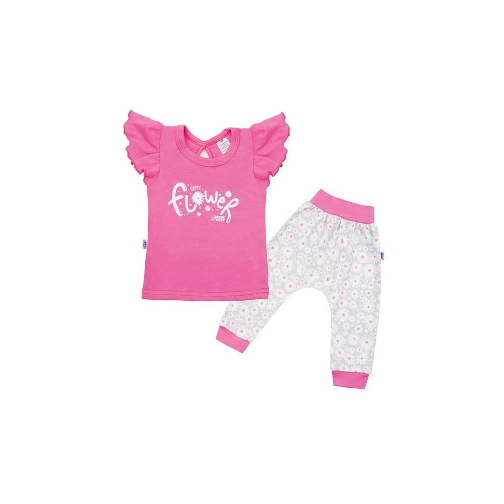 2-dílná kojenecká bavlněná souprava New Baby Happy Flower tmavě růžová 68 (4-6m)