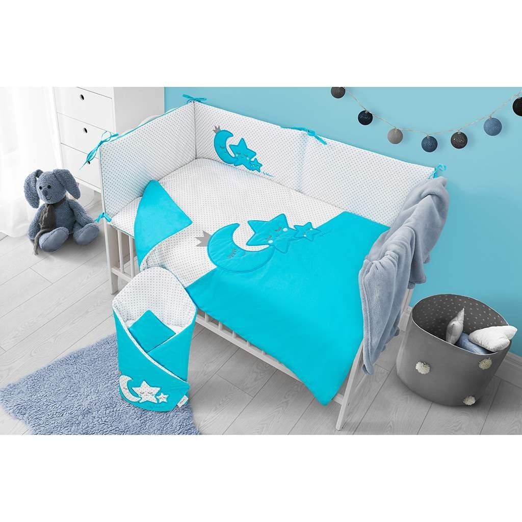 Krásná dětská bavlněná 3-dílná souprava do postýlky Belisima Magic Stars pro miminka. Souprava je zdobena nápisem a obrázkem koruny. Je vyrobena z měkkého, příjemného materiálu. Obsahuje povlečení na polštářek cca 40x60 cm, povlečení na peřinku cca 90x120 cm a mantinel cca 180 cm. Materiál 100% bavlna.Tyto výrobky jsou bezpečné, protože: