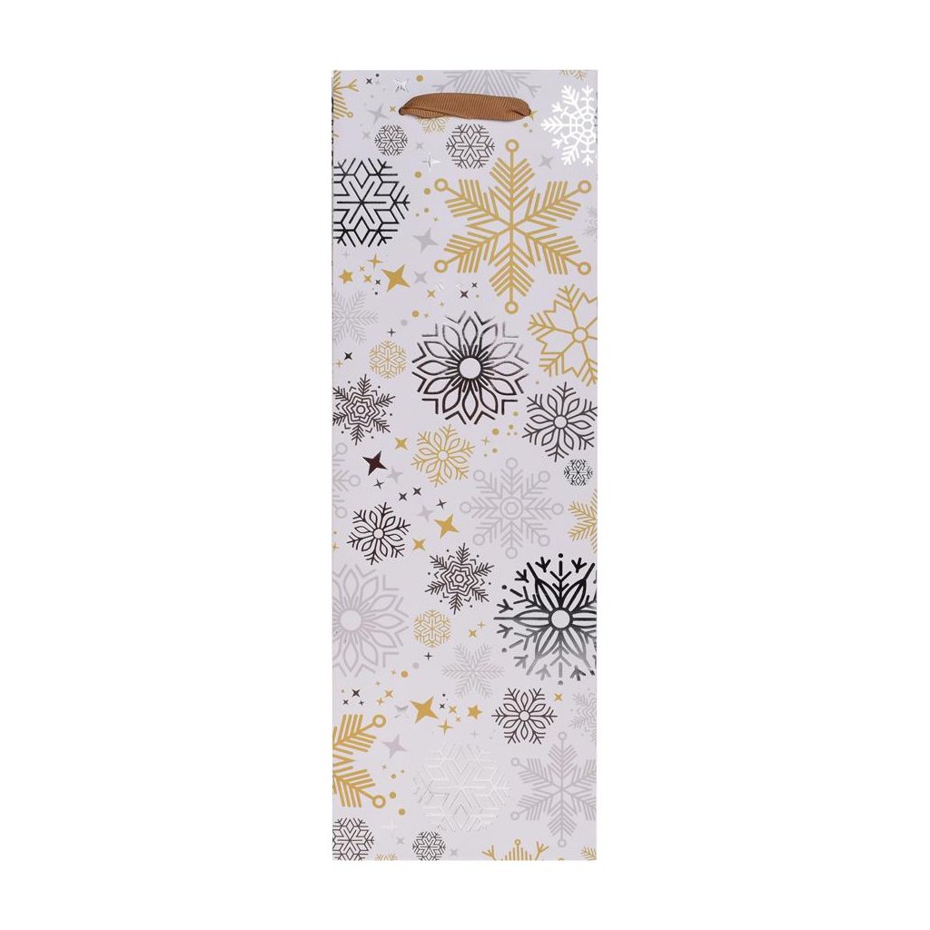 Cena za 1 ks: 31, AGB2013504 TAŠKA darč.V37x12+10cm Metallic snowflakes bottleDoplňkové parametry
