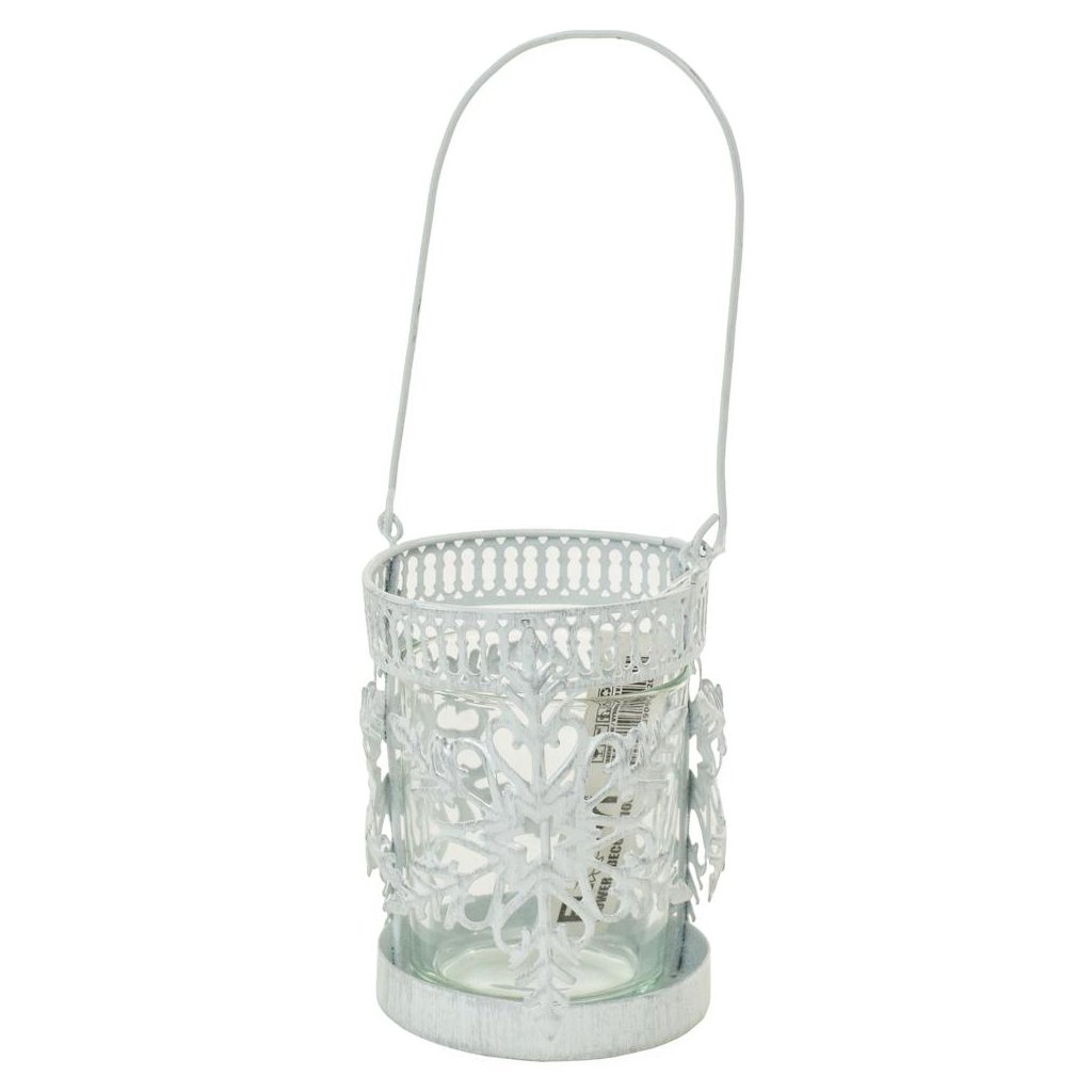 AKCIA! SVIETNIK VLOČKA KOV+SKLO BIELY 6,5x6,5x9CM