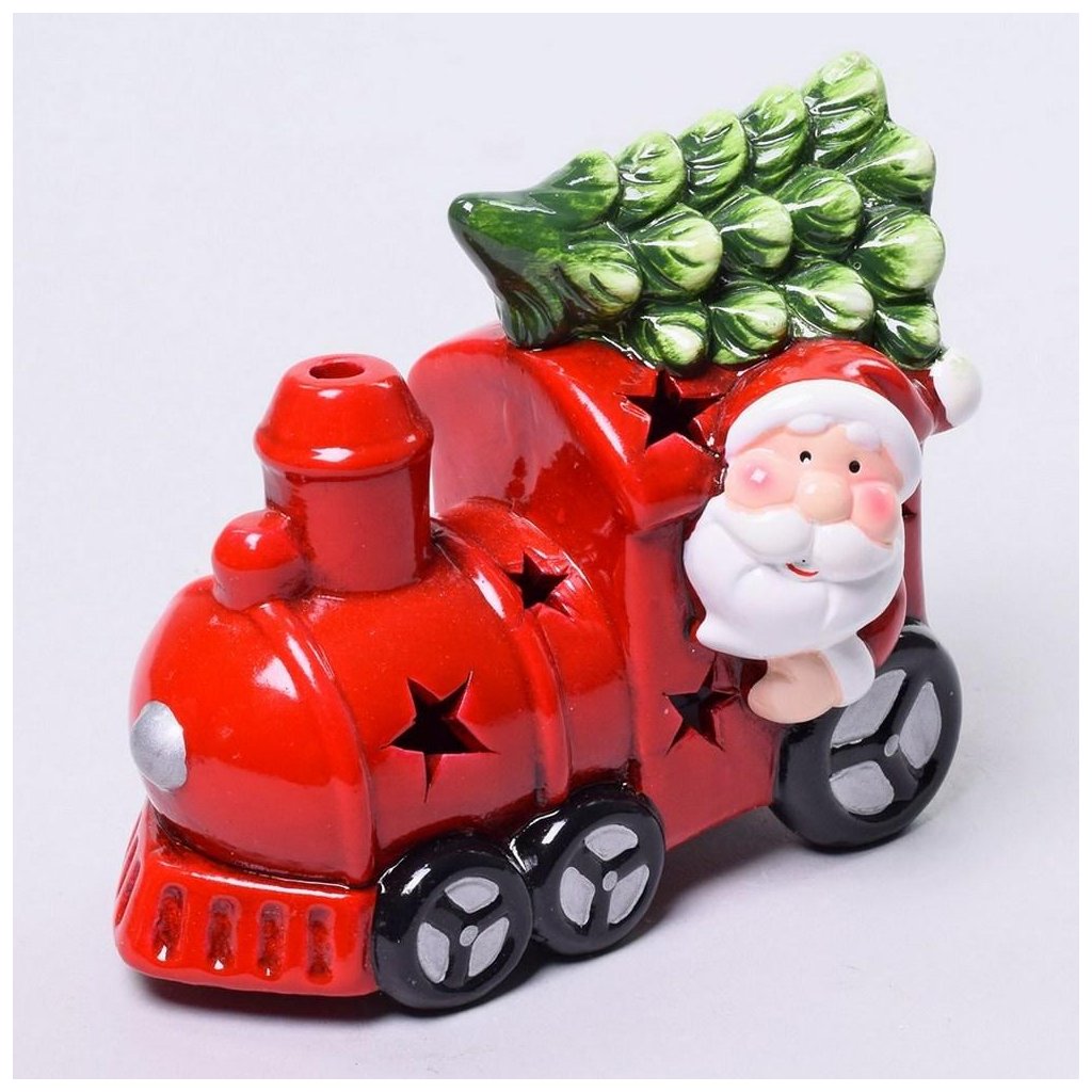 Cena za 1 ks: 138, AKCIA! VLÁČIK SANTA LED KERAM 14,3X8X11,2CM ČERV.Doplňkové parametry