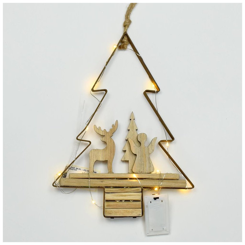 AKCIA! ZÁVES STROM ANJEL LED DREVO NATUR 21x4x27CM