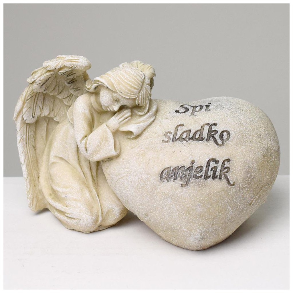 Cena za 1 ks: 141, ANJEL U SRDCE ŠEDÝ 15x9x9,5CM POLYRES