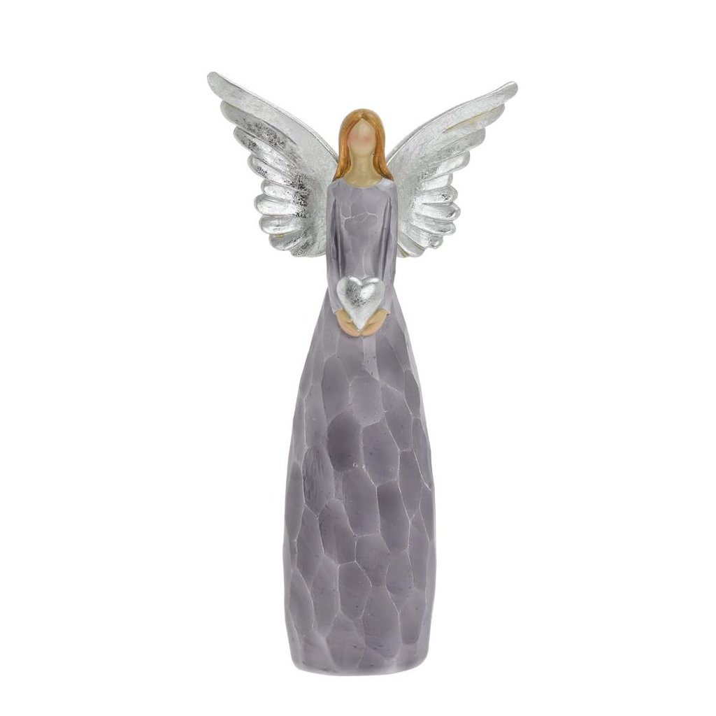 ANJEL SO SRDCOM SIVO/STRIEBORNÝ POLY 16,2*6*30CM