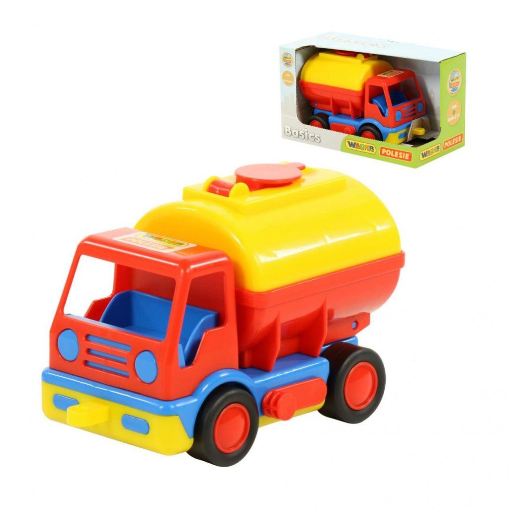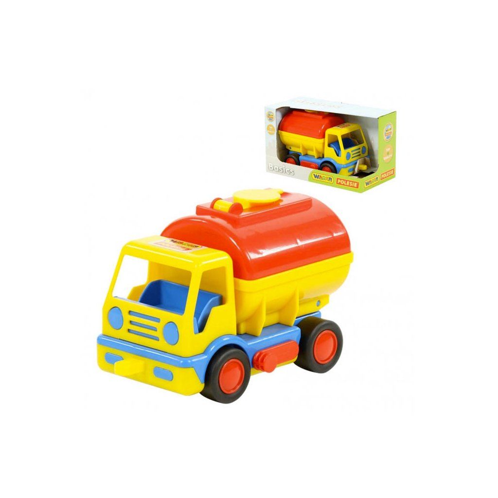 Auto na gumových pneumatikách, mechanicky ovládané vyklápění cisterny s uzavíracím otvorem ve vrchní části. Hračka je certifikována pro děti od 1 roku věku od renomované značky Wader quality toys.Doplňkové parametry