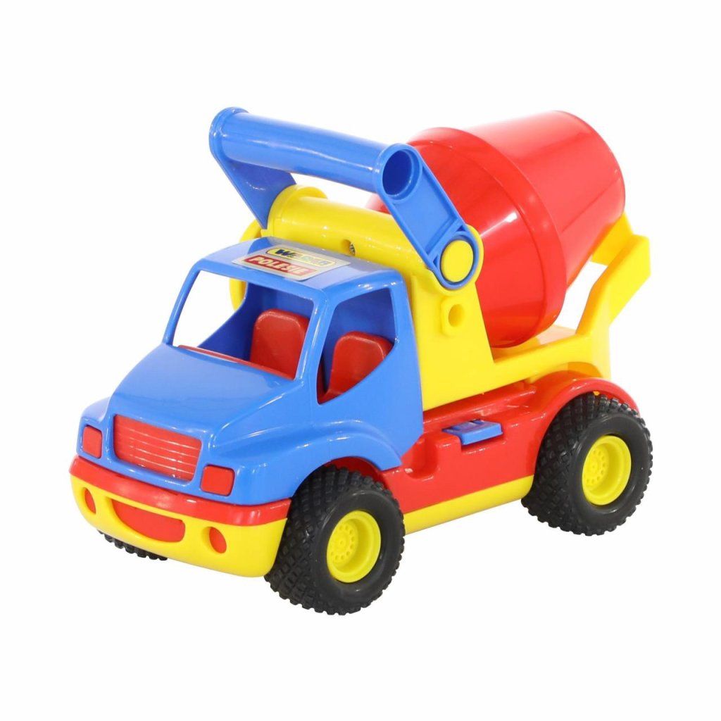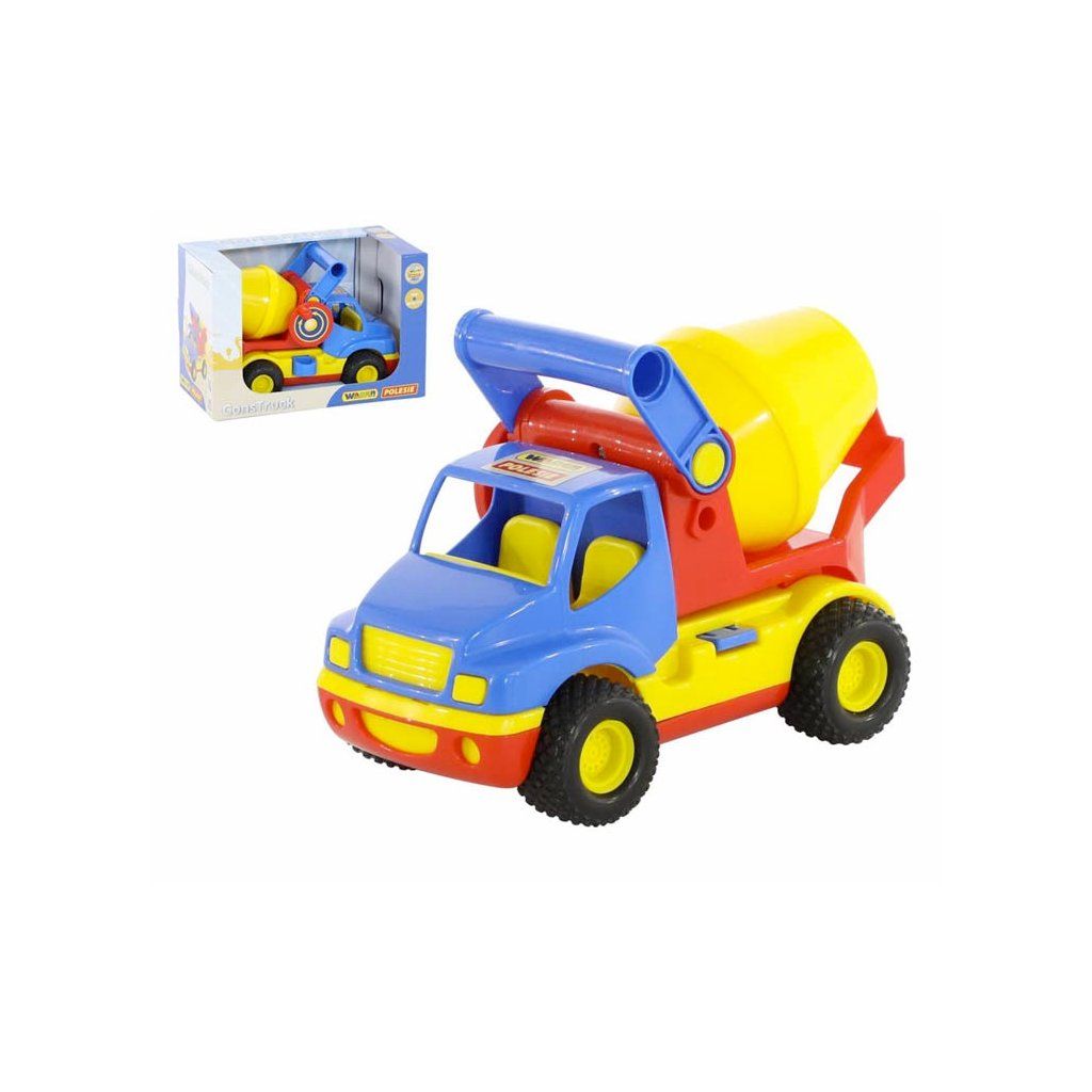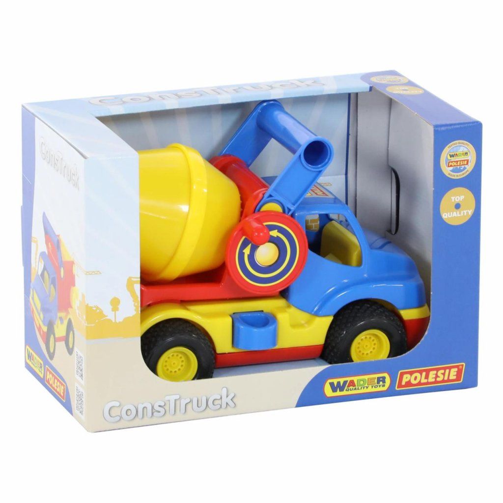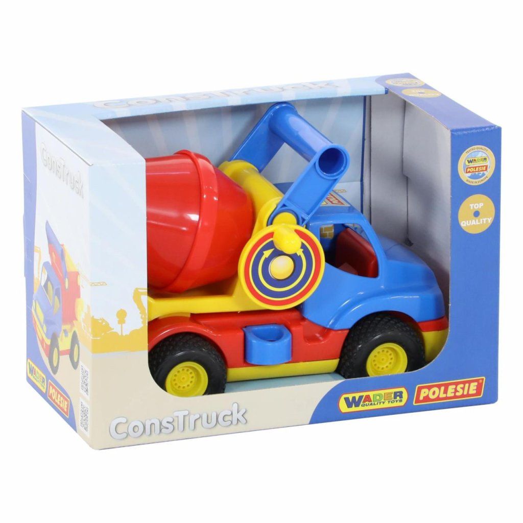 Auto ConsTruck domíchávač na gumových pneumatikách, po odjištění mechanicky výklopná míchačka s ručním pohonem. Hračka je certifikována pro děti od 1 roku věku od renomované značky Wader quality toys. Barevné kombinace konzultujte dle aktuálního stavu na skladě.Doplňkové parametry
