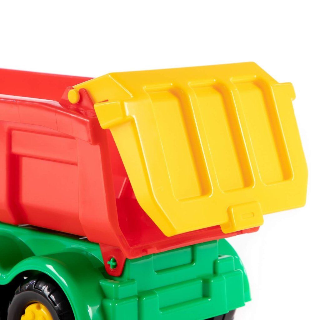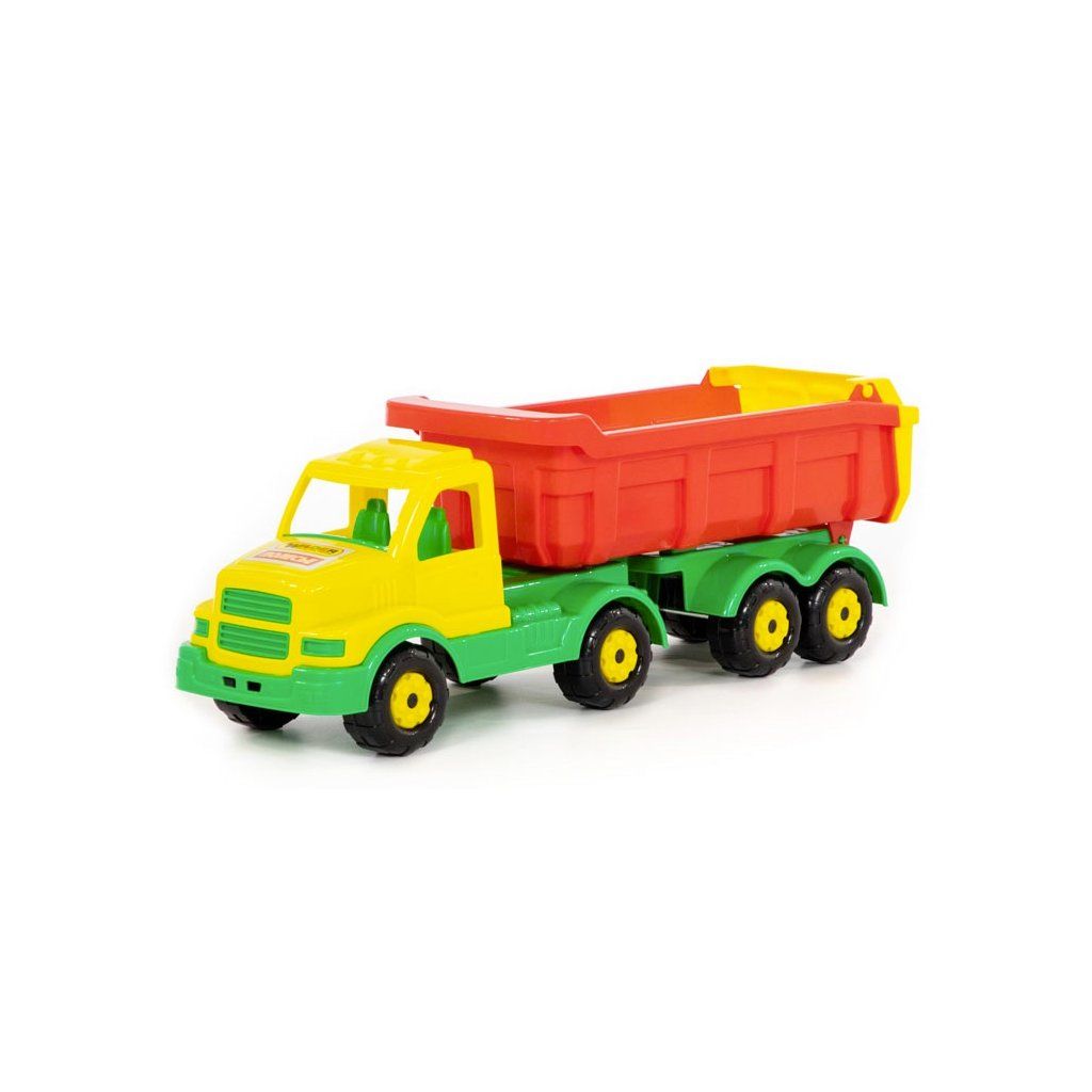 Auto Stopař s návěsem je vyrobeno z pevného plastu, je 58 cm dlouhé, bez pohonu, s korbu lze vyklápět do zadu, zadní čelo je pohyblivé. Hračka je vyrobena v třídě Wader quality toys.Doplňkové parametry