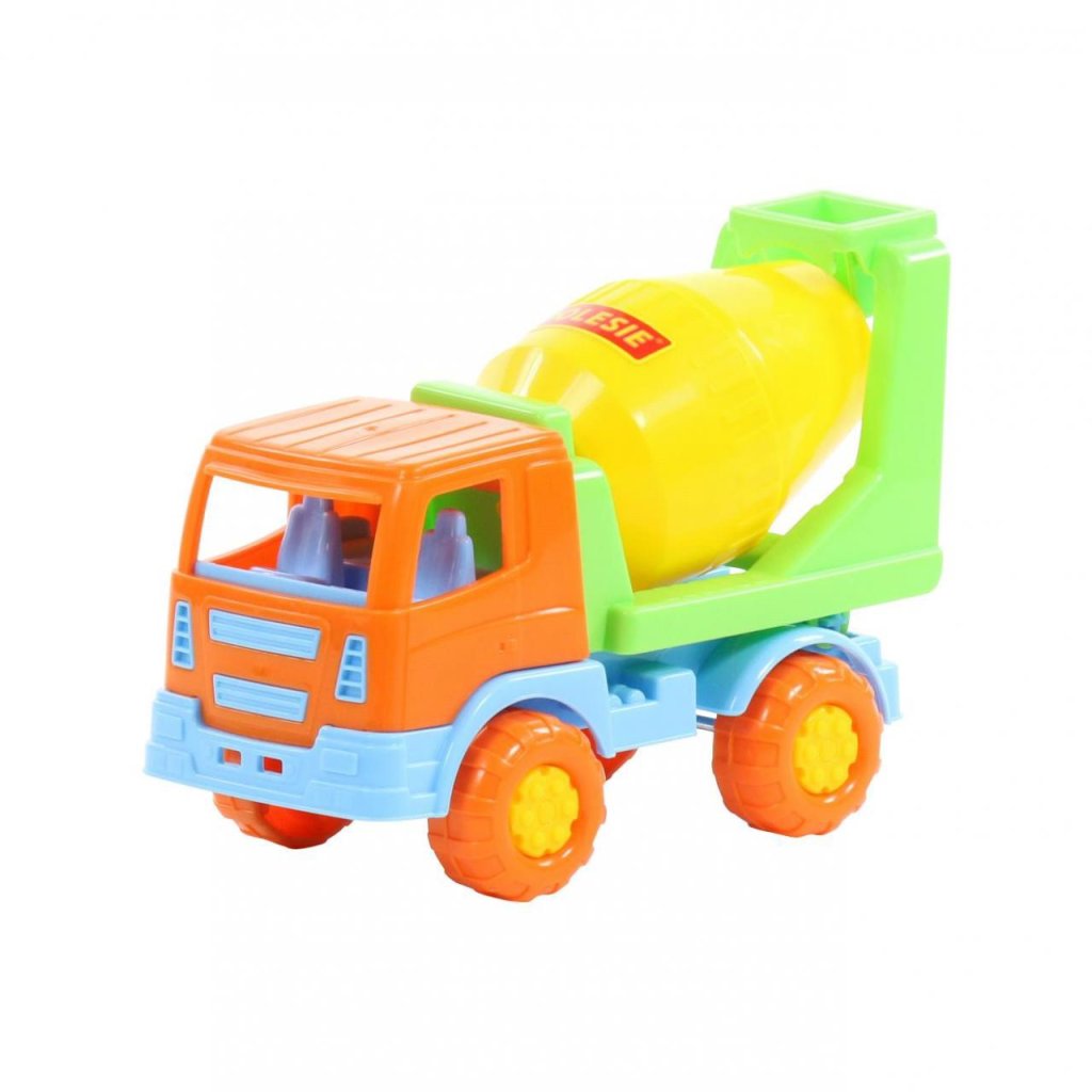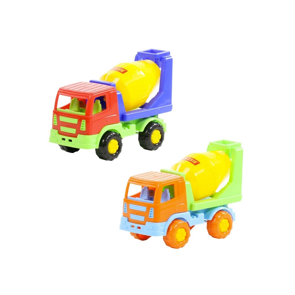 Nákladní auto betonářské bez pohonu, vhodný na hru do interiéru i na písek, certifikovaný pro děti od 1 roku věku.Doplňkové parametry