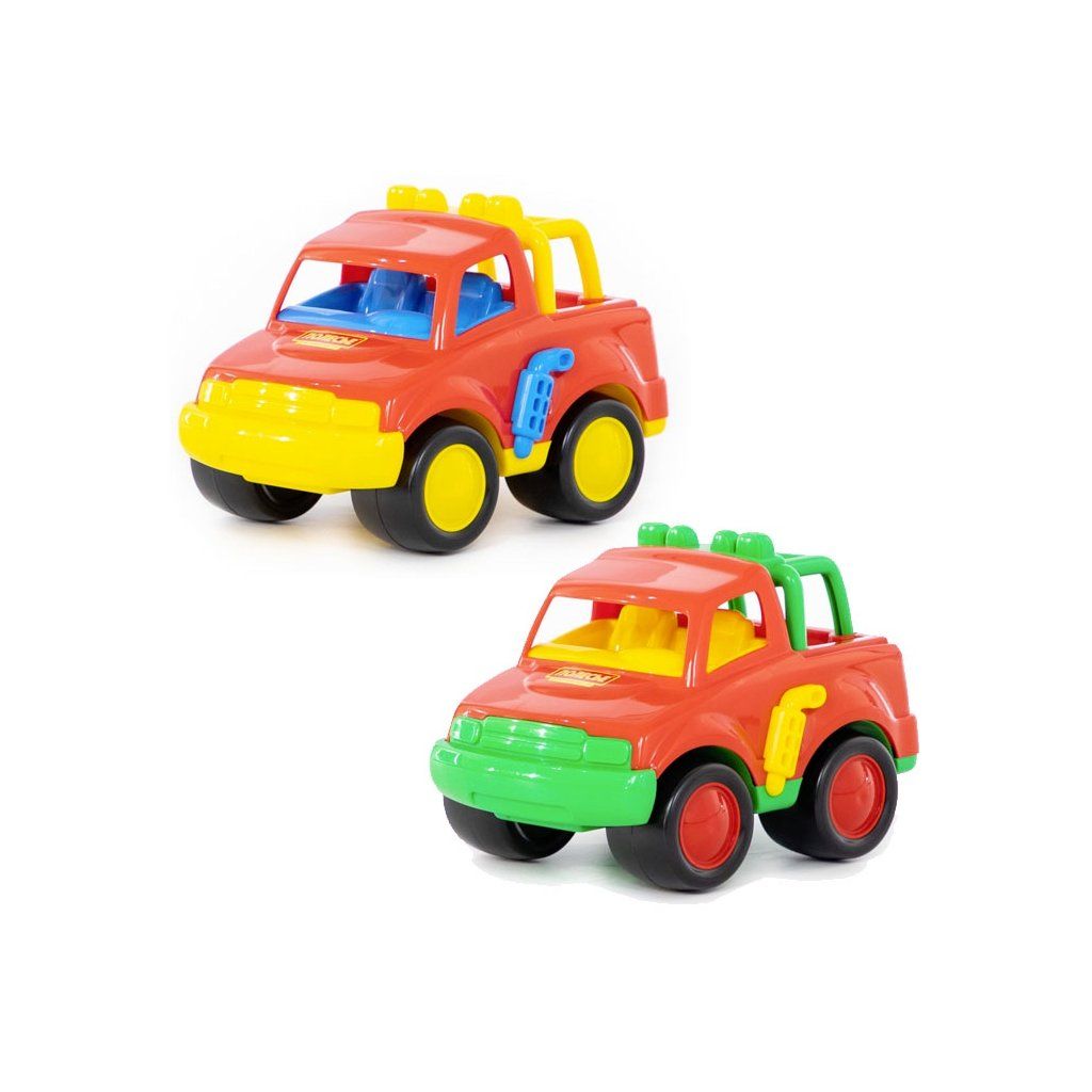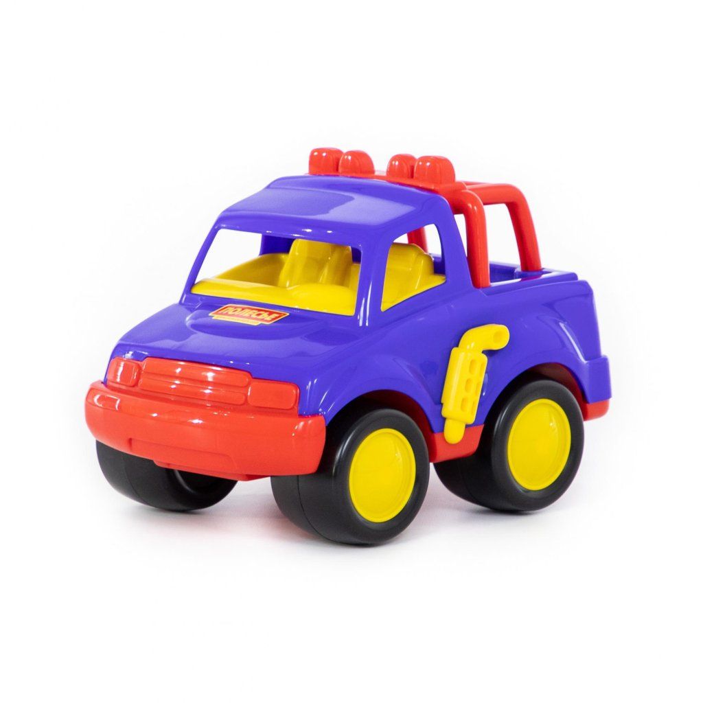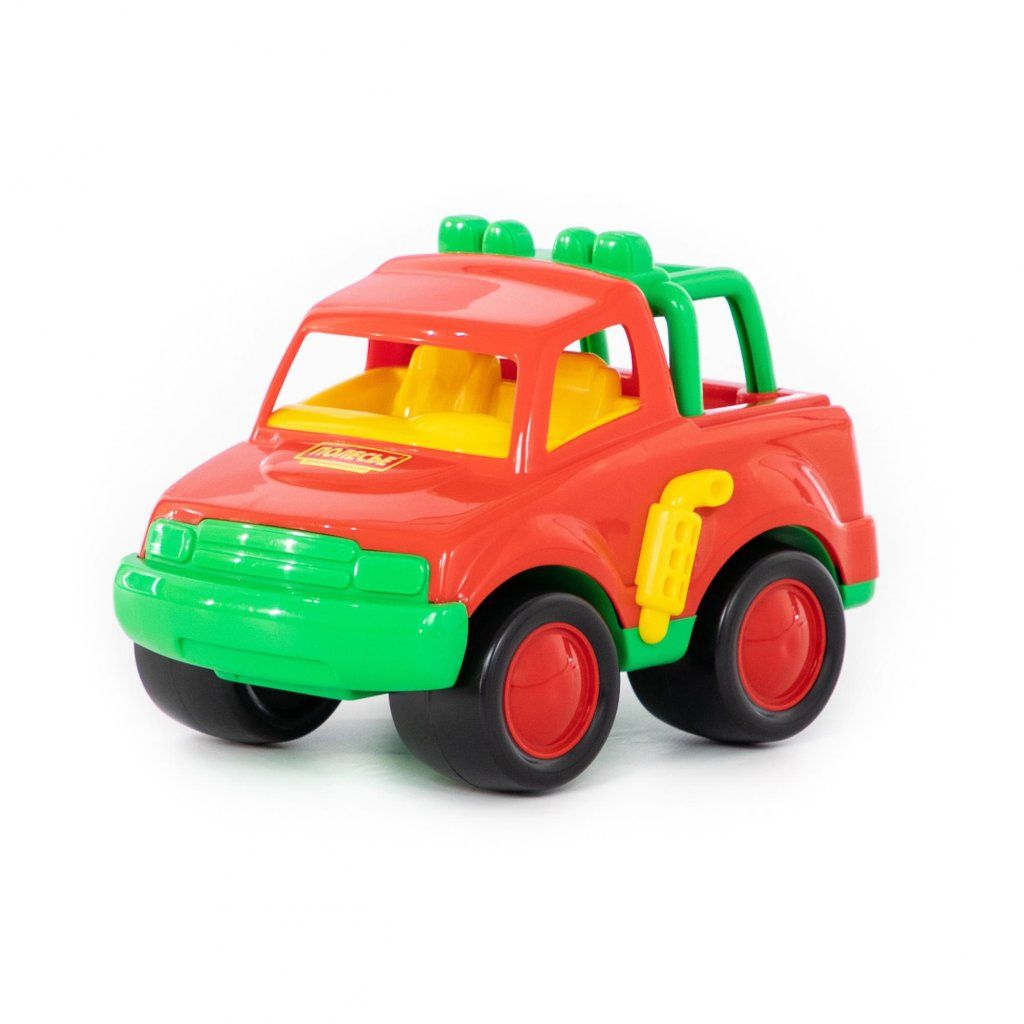 Terénní auto bez pohonu, vhodné na hru do interiéru i na písek, certifikovaný pro děti od 1 roku věku.
