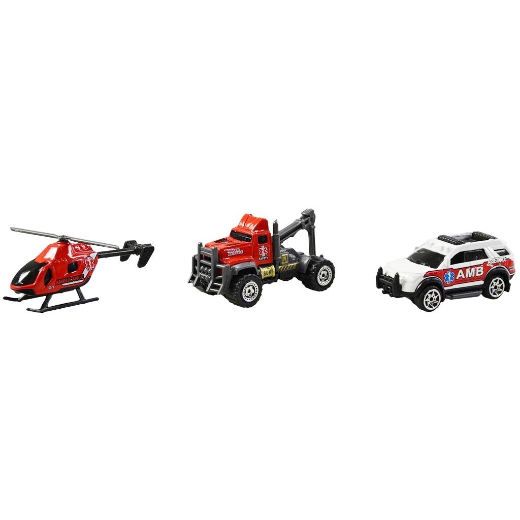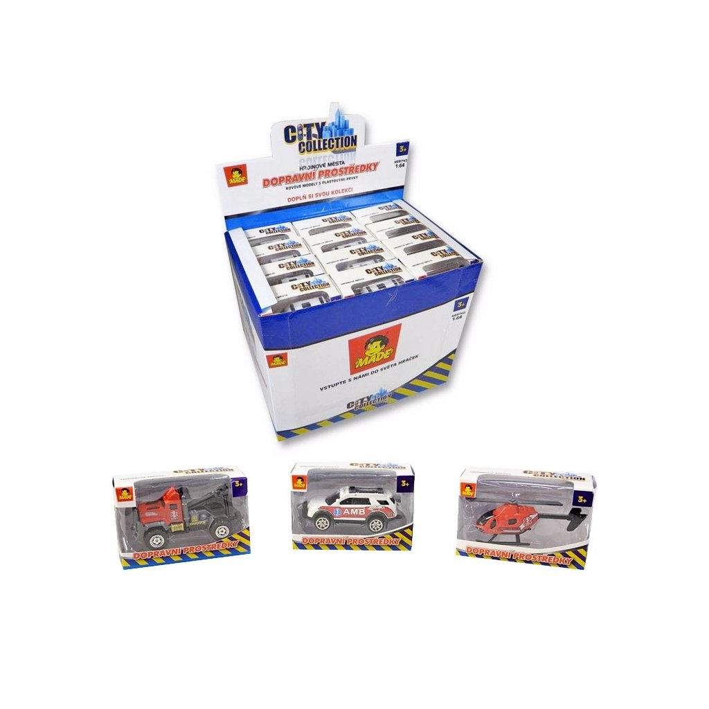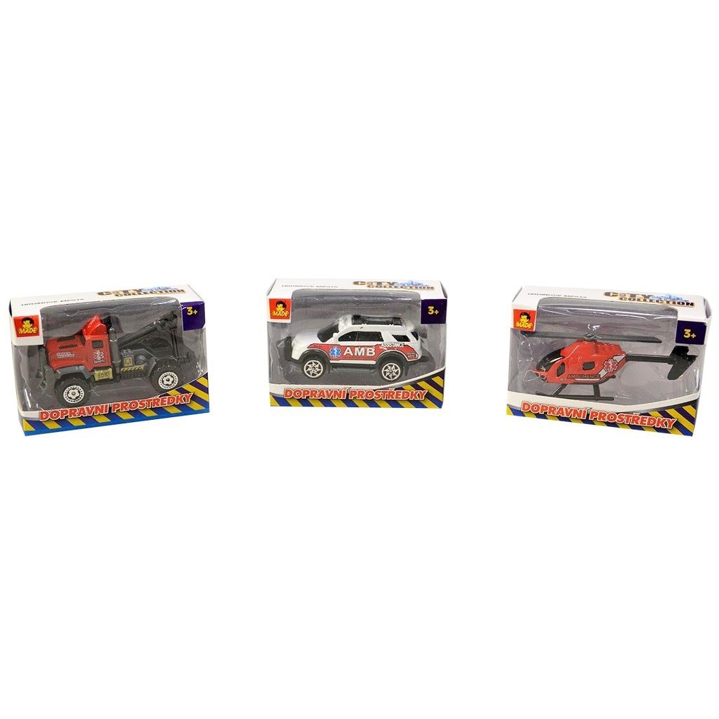 Auto záchranáři, 7 cm velké, bez pohonu, různé druhy i vrtulník, vyrobené v měřítku 1:64, cena je za kus.