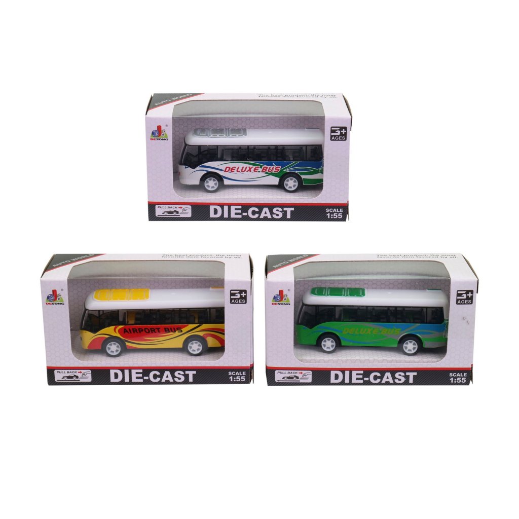 Autobus pro zpětné natažení, má rozměr 9 cm. Na výběr z pěti variant. Baleno v boxu po 24 ks. Cena za 1 ks. Vhodné pro děti 3+.