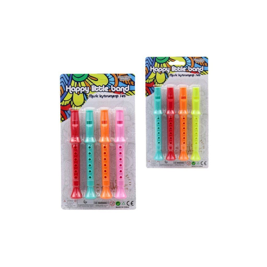 Barevné flétny, mají rozměr 2 x 2 x 14 cm. Na výběr ze dvou variant. Cena je za 1 balení 4 fláut. Vhodné pro děti 3+.Doplňkové parametry