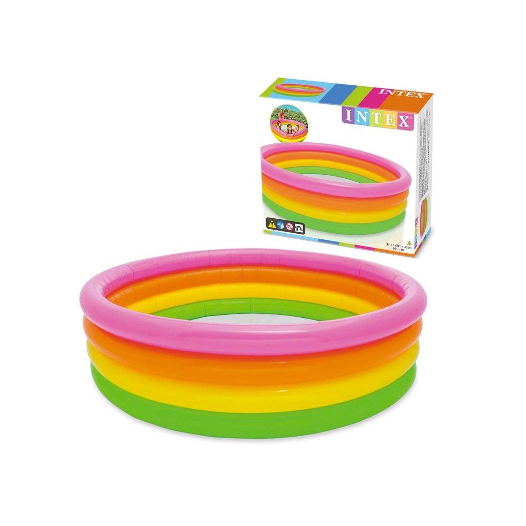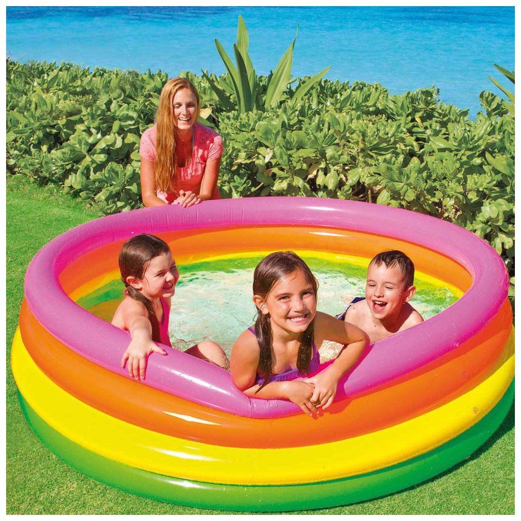 Nafukovací bazén, průměr 168 x 46 cm, vhodný na měkký travnatý povrch. Děti v něm nikdy nenechávejte bez dohledu.