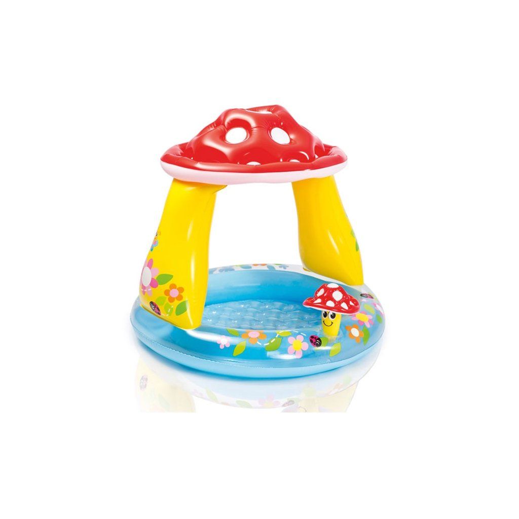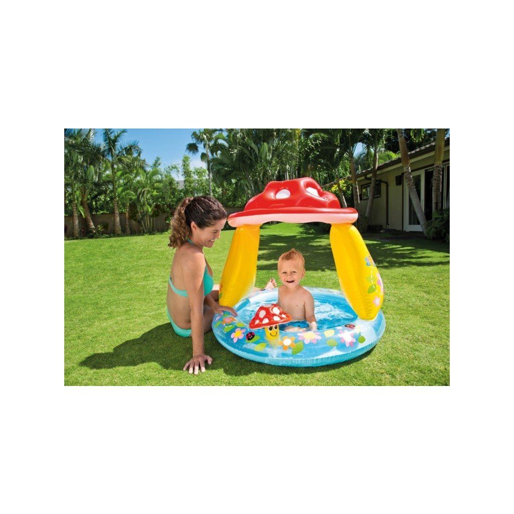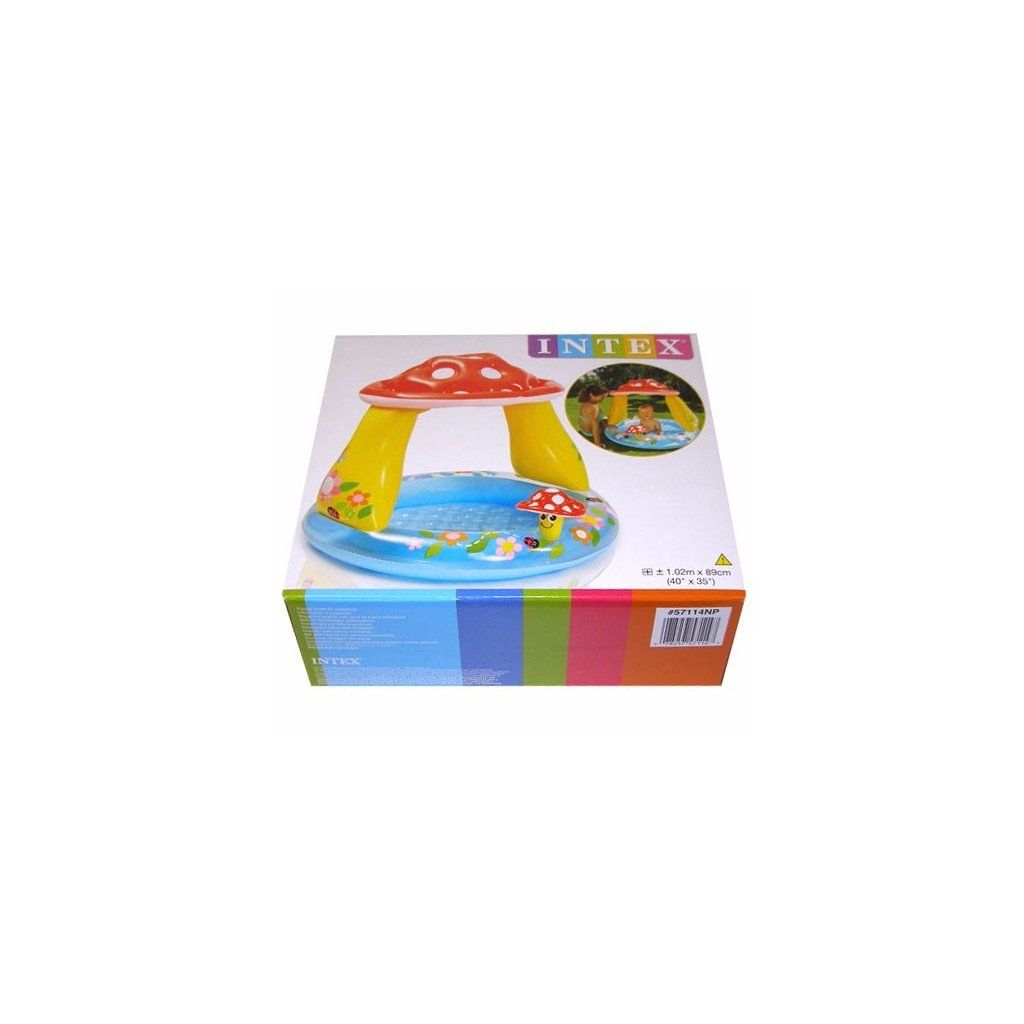 Bazén muchomůrka s průměrem 102 cm a celkovou výškou 89 cm vhodný na měkký travnatý povrch. Děti v něm nikdy nenechávejte bez dozoru.