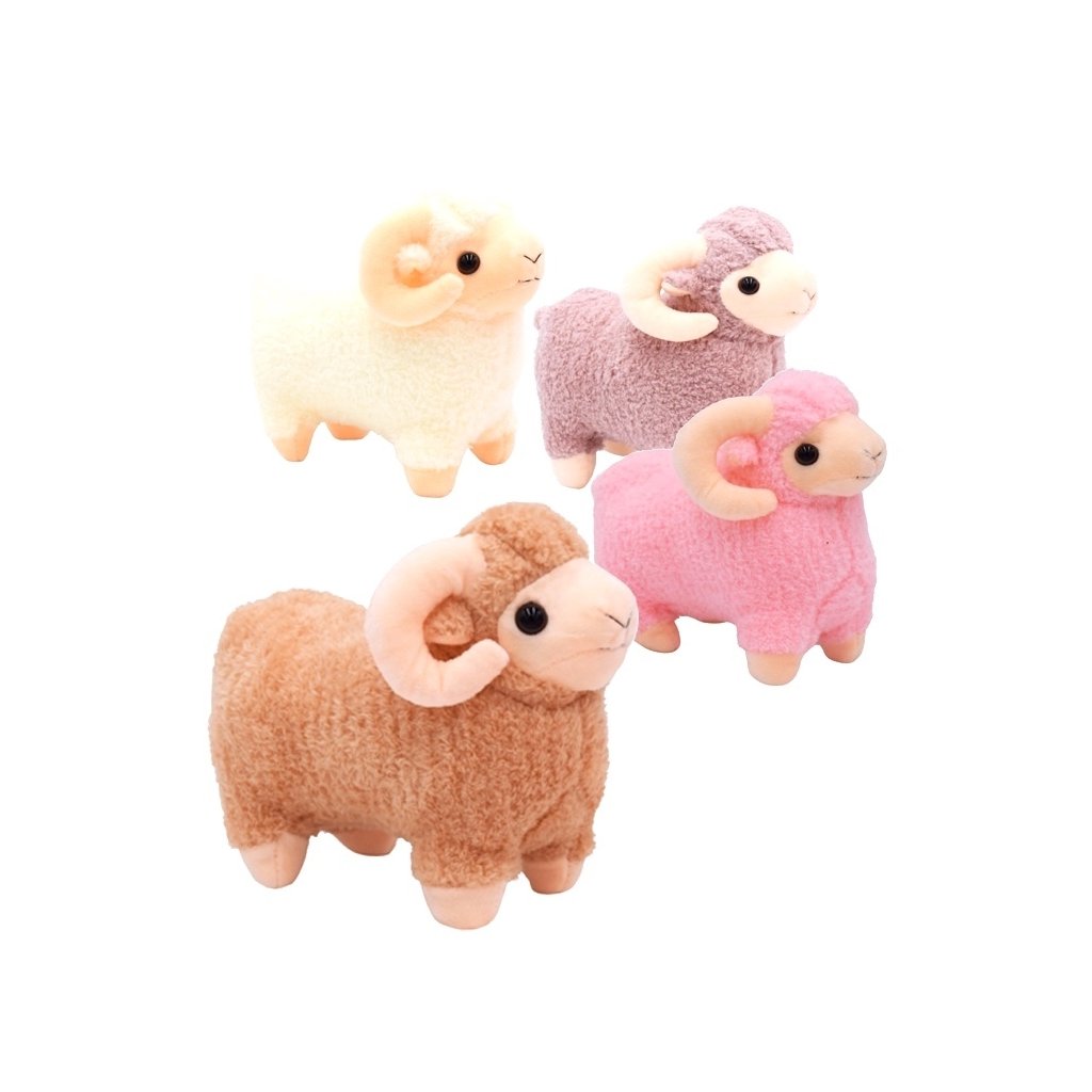 Plyšový stojící beránek Edo. Možnost výběru ze čtyř barev - hnědý, růžový, bílý nebo bordó.