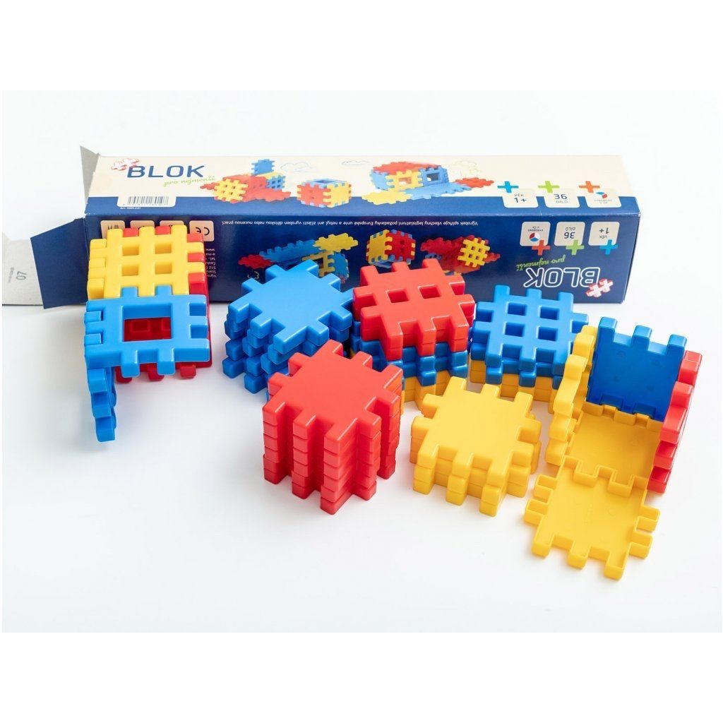 První stavebnice BLOK ? Svět potěší ty nejmenší stavitele, a to již od věku 3 let. Děti díky ní mohou poznat celý svět, např. se proletět nad krajinou letadlem, nebo si zajezdit po poli ve vlastním traktoru, postavit si dům, chatu či dokonce originální hrad. Ze 146 barevných dílků a koleček si děti mohou jednoduše vykouzlit svůj vlastní svět! Bude je to bavit, protože díky velkým dílkům stavba rychle roste a rodiče budou v klidu, protože je bezpečná pro děti od 3 let. Obsahuje totiž i několik malých dílků, které by děti mladší než 3 roky mohly vdechnout.Doplňkové parametry