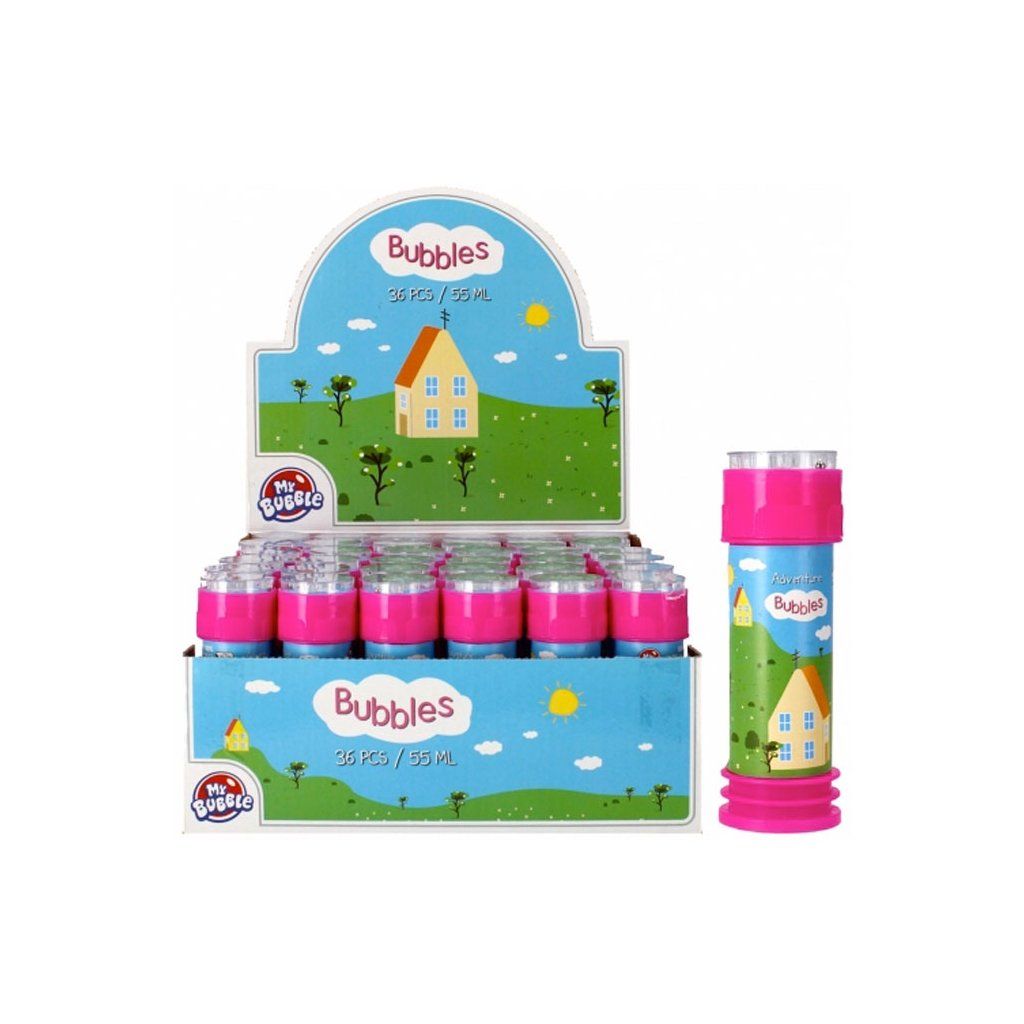Bublifuky Adventure potěší nejen hrající si dítě, ale i všechny kolem. Jsou také ideální pro použití na různých venkovních akcích, narozeninových oslavách nebo slavnostech! Nádoby jsou naplněny speciální tekutinou pro výrobu bublin. Ponořte špičku do připravené tekutiny a po vyjmutí ji vyfoukněte. Každá nádoba má na uzávěru kuličkovou hru s bludištěm. Bubliny o objemu 55 ml. Rozměry/hmotnost: rozměry výrobku (V)[cm]: (cm): 11 cmDoplňkové parametry