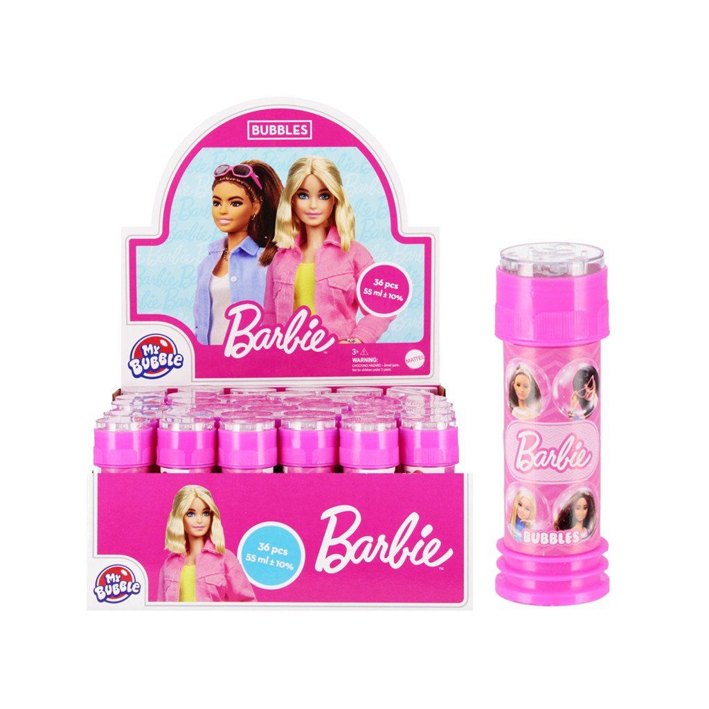 Bublifuk Barbie má rozměr 11 cm a objem 55 ml. Baleno po 36 kusech v boxu. Cena je za kus. Vhodné pro děti ve věku 3+ let.