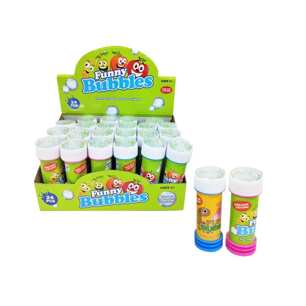 Bublifuk Ovocníček s obsahem náplně 55ml se hrou s kuličkou v uzávěru. Možnost výběru ze dvou barev nádobky - růžová nebo modrá. Nevhodné pro děti do 3 let. cena za kus.