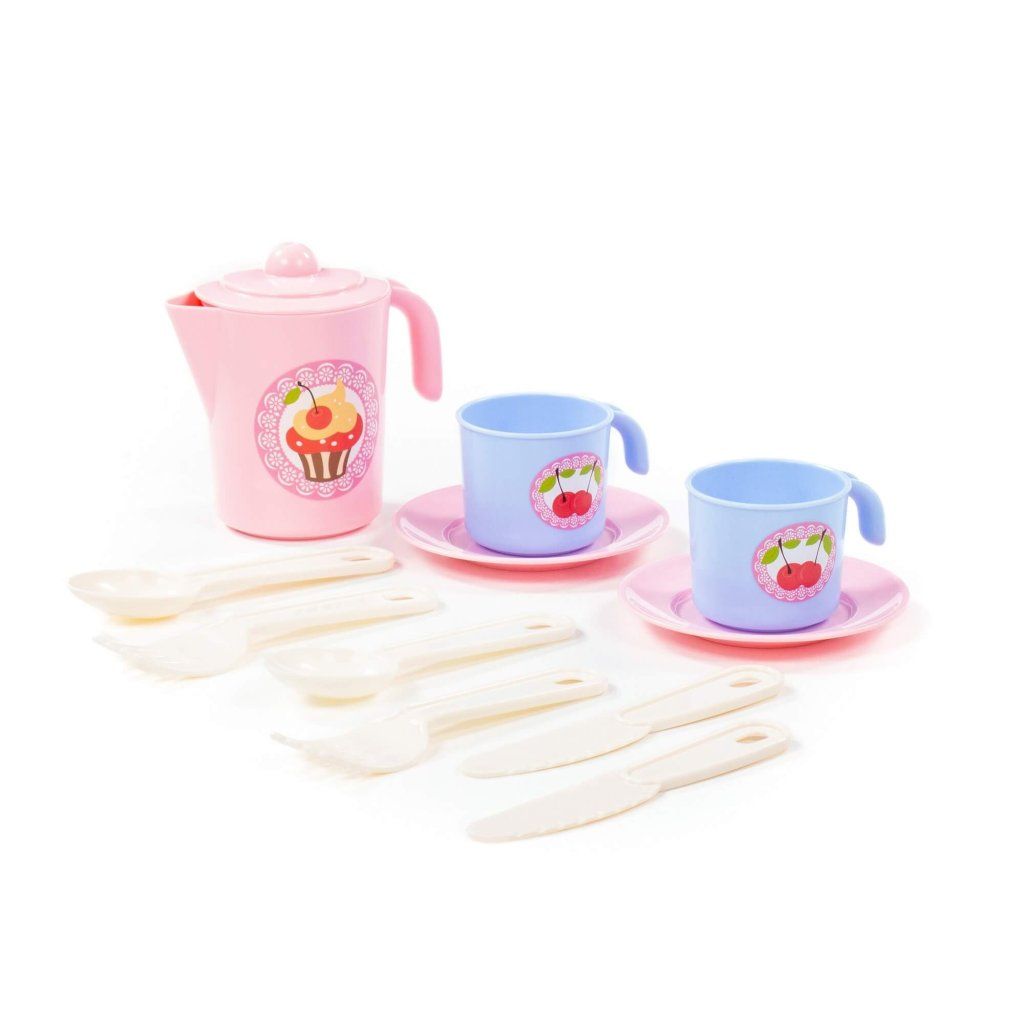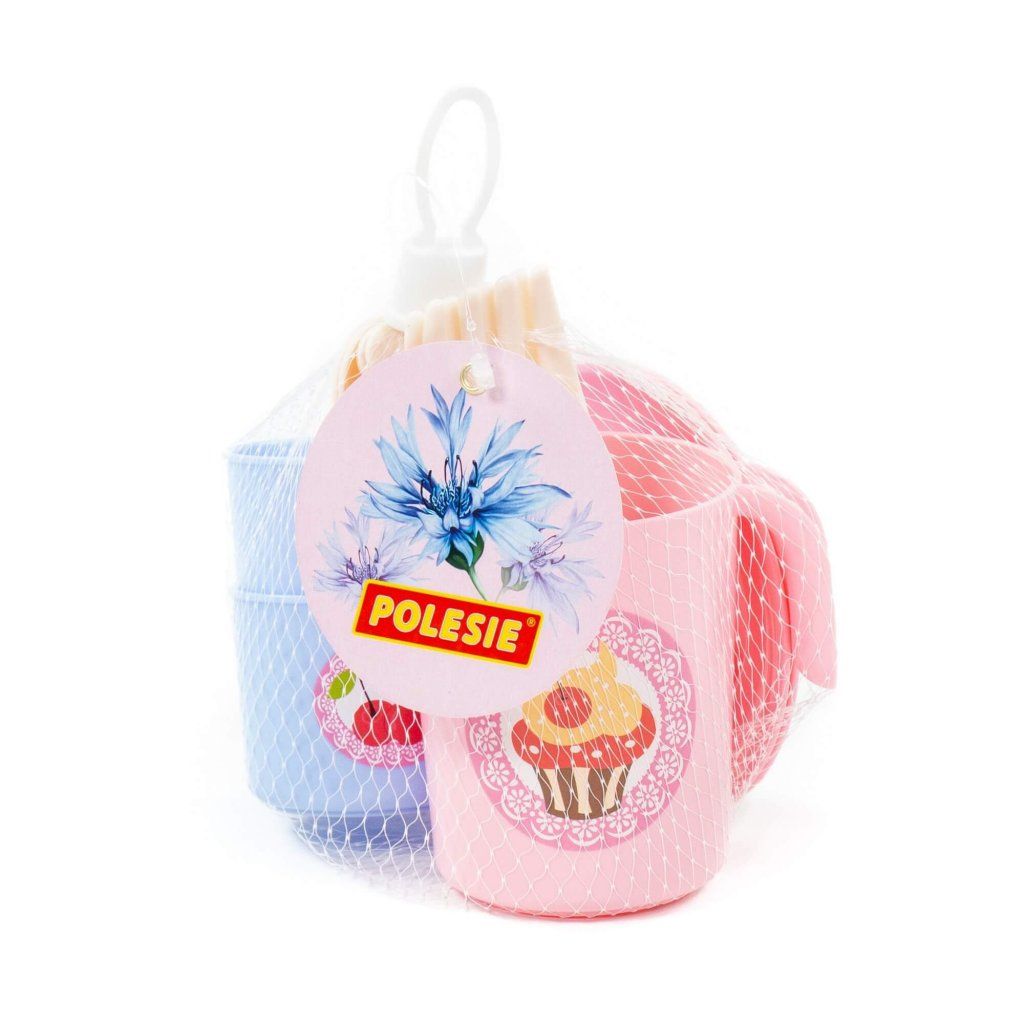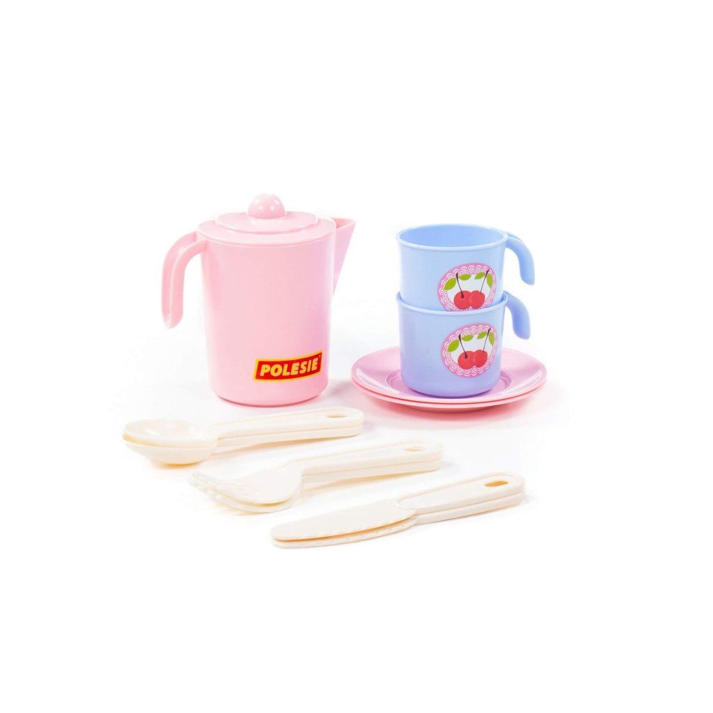 Každý majitel dětské sady nádobí Anyuta si bude moci přestřihnout barevný stůl pro své oblíbené panenky a pozvat hosty. V prezentované verzi je sada vyrobena v příjemných barvách a zdobená tematickými nálepkami. S takovou hračkou dívka získává dovednosti mladé ženy v domácnosti a ztotožňuje se s obrazem své matky. Sada obsahuje talíř - 2 ks., hrnek - 2 ks., nůž - 2 ks., vidlička - 2 ks., lžíce - 2 ks., džbán s víčkem - 1 ks.Doplňkové parametry
