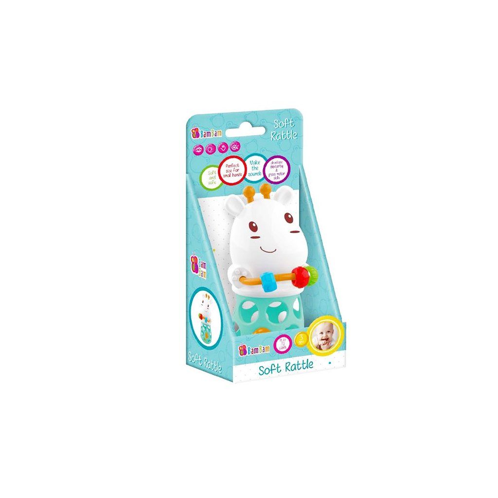 Měkká gumová hračka. Třesením se vydávají charakteristické zvuky doprovázející odrážení míče. Dítě rozvíjí motorické a manuální dovednosti. Rukojeti s kroužky jsou ideální na naučení se uchopení a procvičení manuálních dovedností malých ručiček. Chrání před třením prstů a citlivých dásní. Hračka je určena od 3 měsíců.Doplňkové parametry