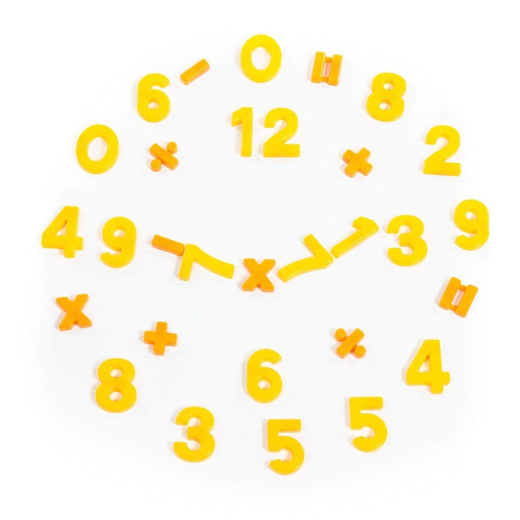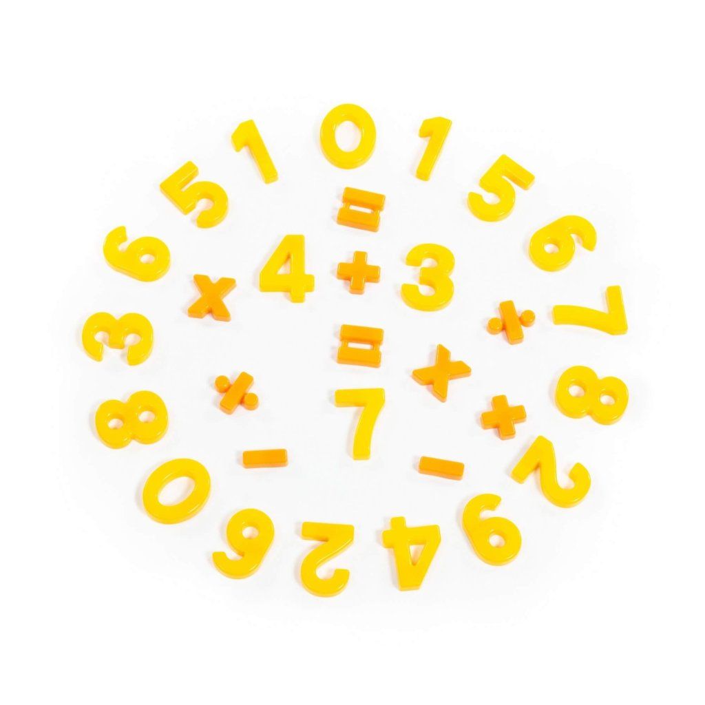 Pomocník pro malé školáky. Sada obsahuje 20 číslic a 10 matematických symbolů. Čísla jsou zvýrazněny žlutou barvou a matematické symboly oranžovou barvou.Doplňkové parametry