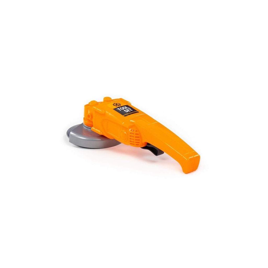 Bruska je velmi zajímavý typ pracovního nástroje, design je vyvinut v souladu se skutečným analogem, což znamená, že určitě zaujme dítě a umožní vám vymýšlet různé herní scénáře.Mlýnek je vyroben v zářivé oranžové barvě, má páku, po stlačení se mlecí kotouč začne otáčet.