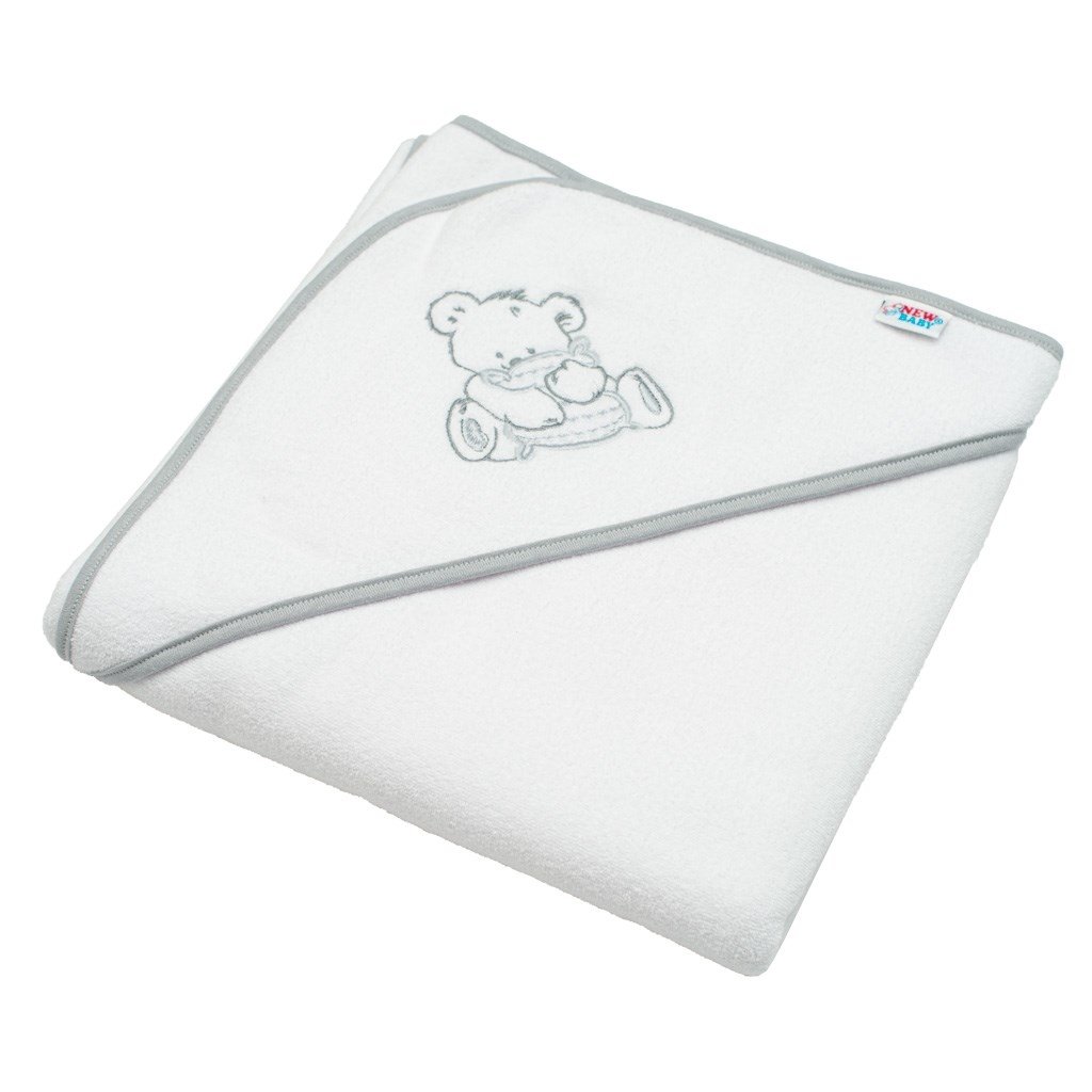 Dětská froté osuška s výšivkou a kapucí New Baby 80x80 bílá medvěd
