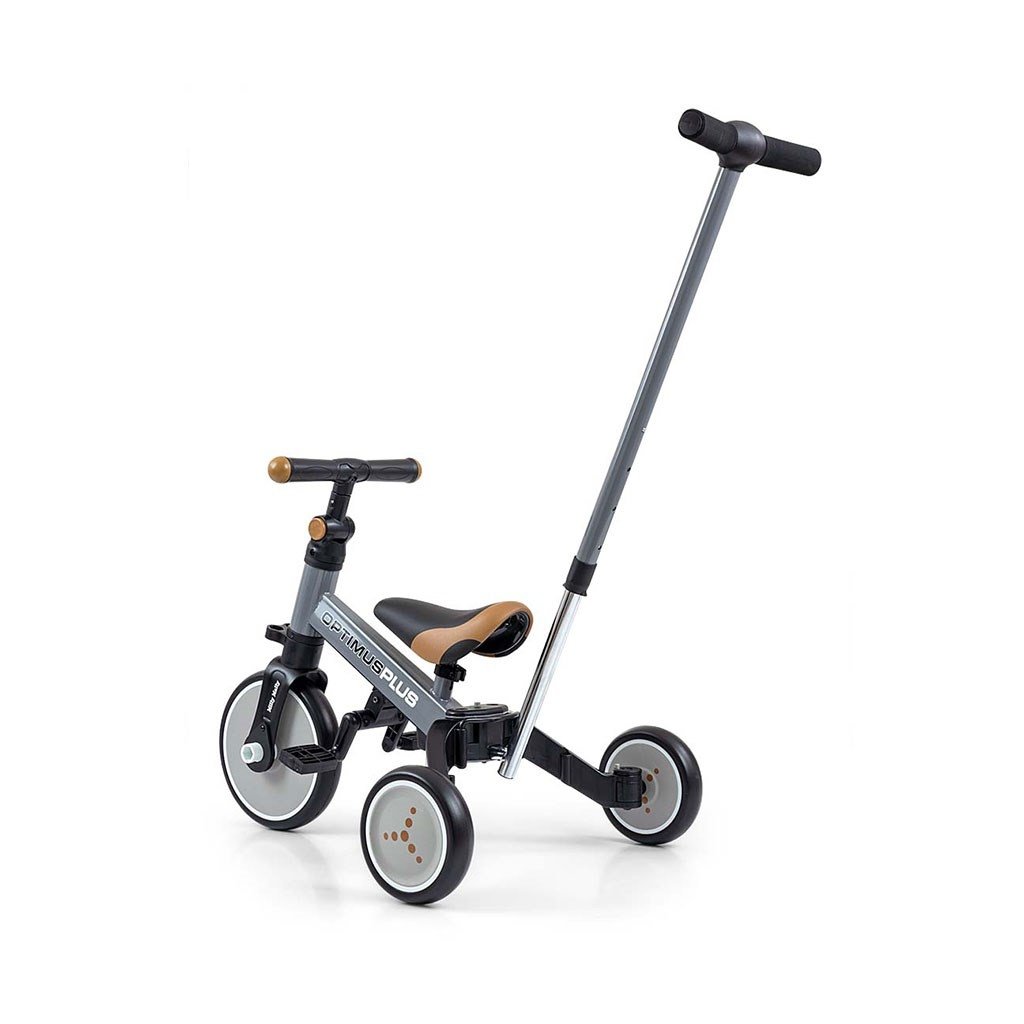 Dětská tříkolka 4v1 Milly Mally Optimus Plus s vodící tyčí grey