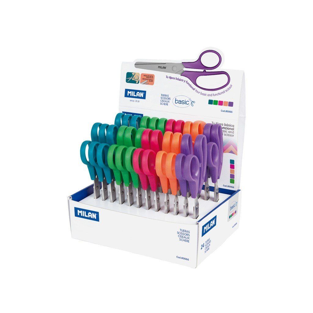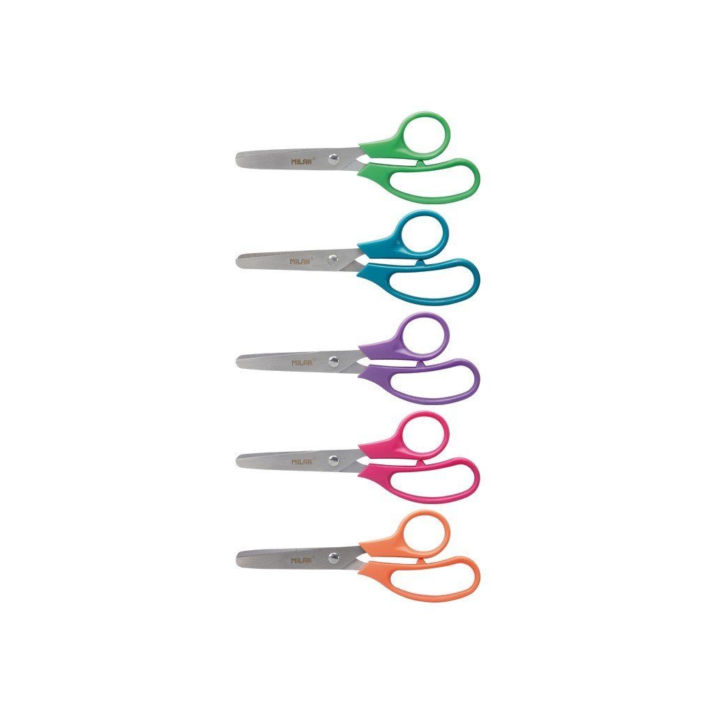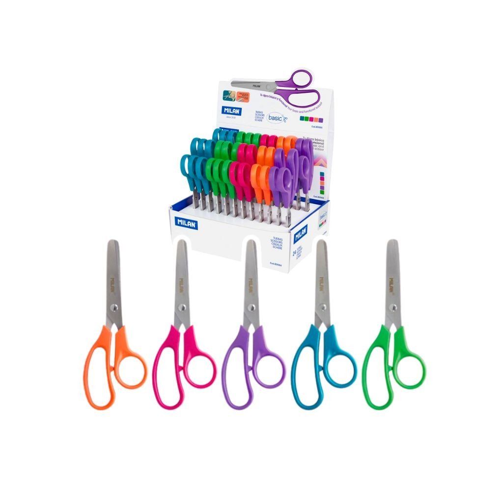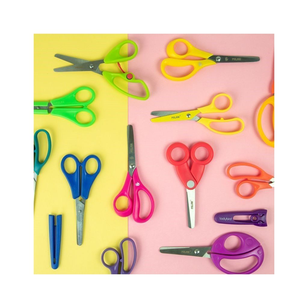 Dětské nůžky MILAN Basic 133 mm jsou navrženy speciálně pro malé ruce a bezpečné používání. Mají zaoblené špičky, které snižují riziko poranění, a ergonomická plastová držadla pro pohodlný úchop. Ocelové čepele snadno a přesně stříhají papír, karton i kreativní materiály, takže jsou ideální do školy i na domácí tvoření. Skvělá volba pro děti, které rády stříhají a tvoří!Doplňkové parametry