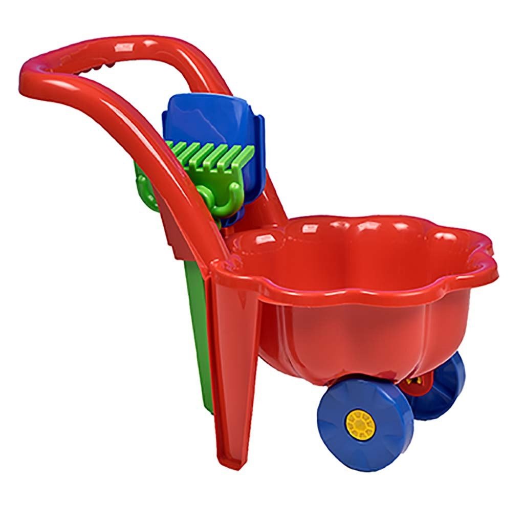 Dětské zahradní kolečko s lopatkou a hráběmi BAYO Sedmikráska červené