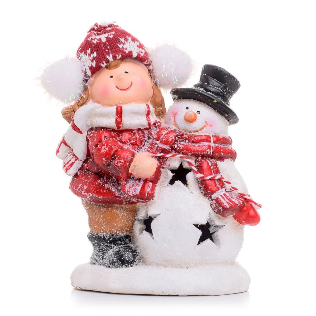 DIEVČA A SNEHULIAK LED KERAMIKA 13*9*18CM