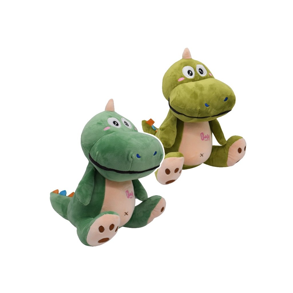 Plyšový 30cm sedící dino s výšivkou na bříšku. Možnost výběru ze dvou barev - zelený nebo slabozelený.
