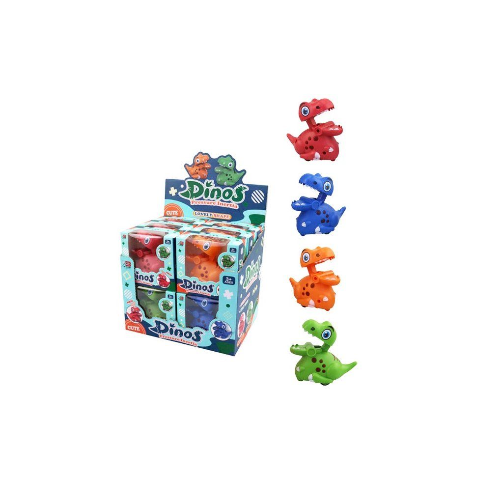 Dinosaurus na stlačení, produkt má rozměr 8 x 8 x 4 cm a na výběr je ze čtyř variací. V boxu se nachází 12 kusů. Cena je za 1 kus. Hračka je určena pro děti 3+.Doplňkové parametry