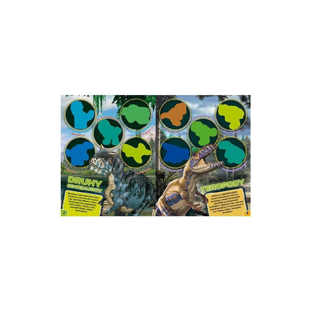 Dolep si svítící samolepky Dinosauři je zábavná samolepková knížka, která potěší všechny malé milovníky pravěkých tvorů. Obsahuje 12 stran a 4 strany samolepek k dolepení, přičemž vybrané samolepky mají speciální svítící okraje, které září ve tmě. Děti si tak mohou vytvořit vlastní svítící dobrodružství s dinosaury. Rozměr produktu je 276 x 216 x 3 mm. hmotnost: 134 gDoplňkové parametry