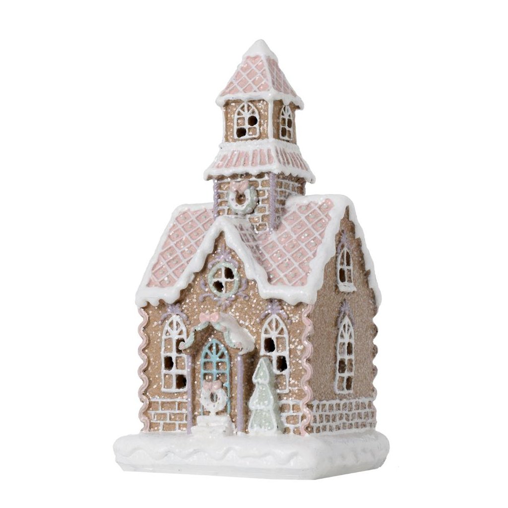Cena za 1 ks: 333, DOMČEK PERNÍK LED POLYRES 13x11x25CM RUŽOVÝ
