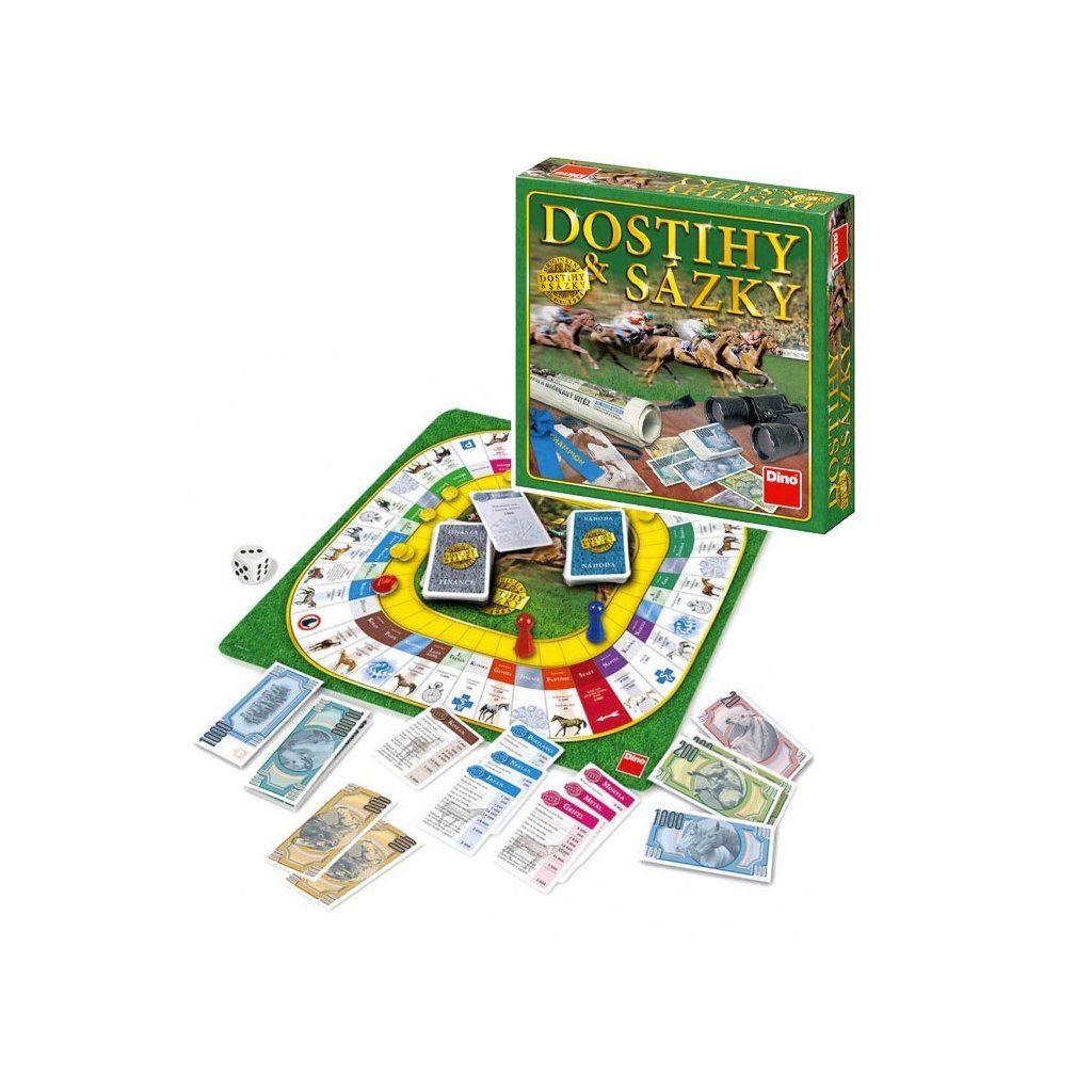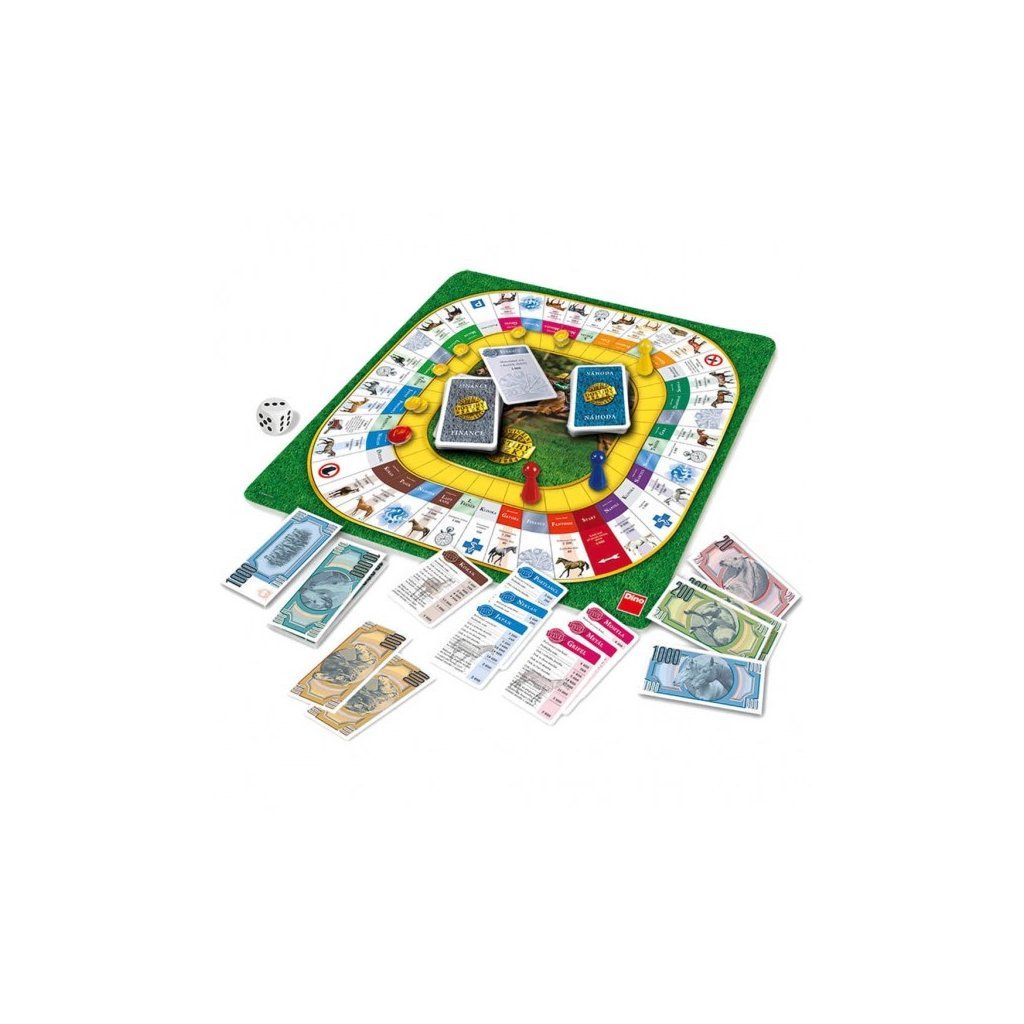 Svět krásných koní i napínavou atmosféru dostihů vnese k vám domů nové vydání již klasické stolní hry Dostihy a sázky. V moderním kabátku se stále skrývají původní pravidla, kdy hráči nakupují stáje a investují do dostihů tak, aby jim přinesly maximum výher. Vítěz musí mít kapku štěstí, promyšlenou taktiku a chuť zariskovat ve správnou chvíli, aby snažení soupeřů ustál až do poslední chvíle. brbr Dostihy a sázky si užijí hlavně dospělí a starší děti. Perfektní zážitek ze hry podpoří i bohaté originální příslušenství. brbr Obsah 1 herní plán, 260 bankovek, 55 karet, 87 žetonů, 6 figurek, 1 hrací kostka, 1 návod.Doplňkové parametry