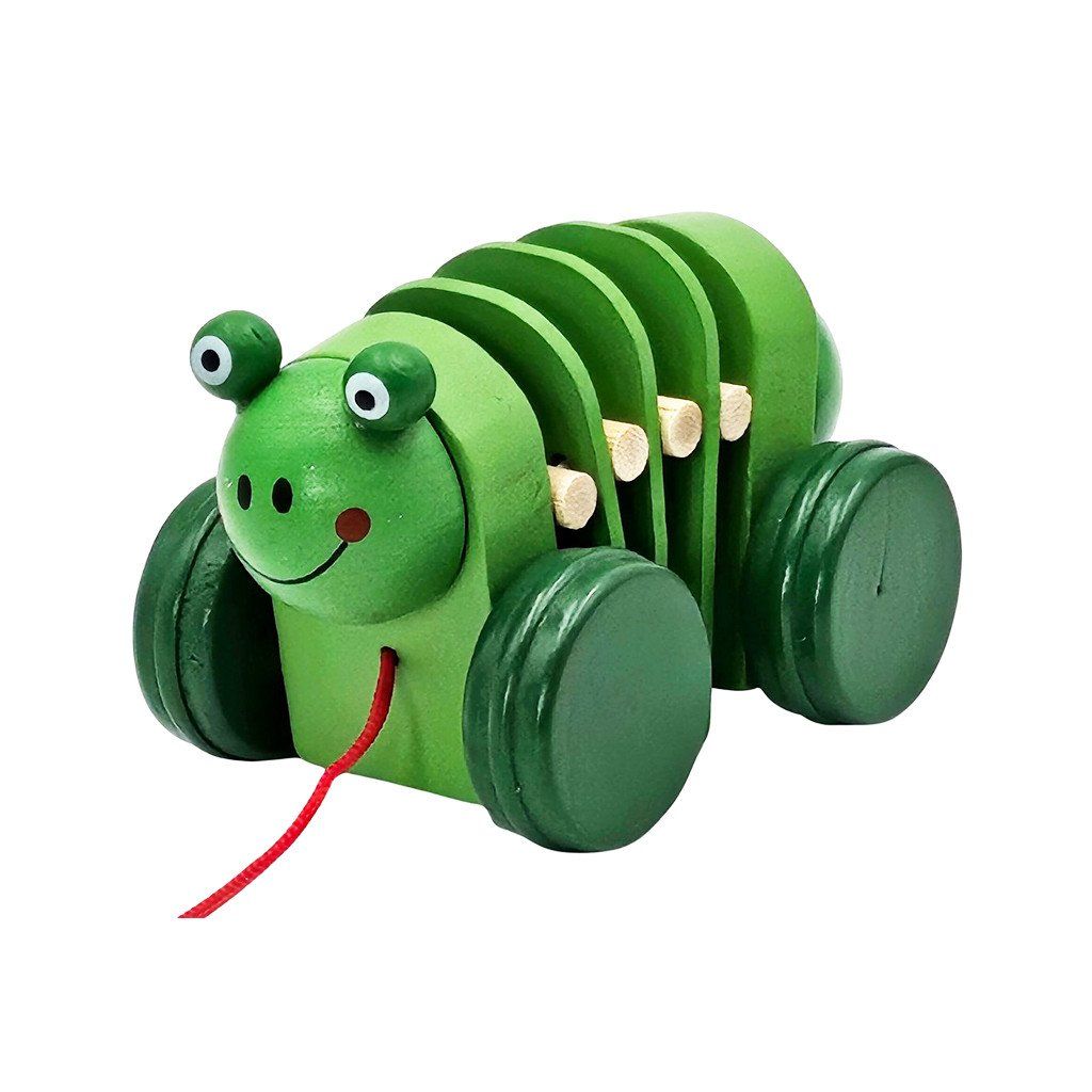 Dřevěná žabka na kolečkách, má rozměr 11,5 cm. Cena je za kus. Vhodné pro děti ve věku 3+ let.Doplňkové parametry