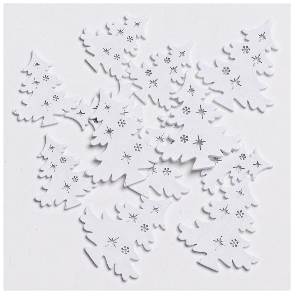 DREVENÉ STROMČEKY BIELE S/12 3,9x4,5CM 3x3,5CM