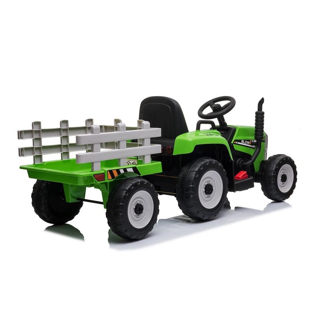 Dětský elektrický traktor Baby Mix s výkonnými motory 2x45W přijíždí v novém inovativním designu. Traktor má vlečku se kterou dítě může převážet své hračky a poklady.
