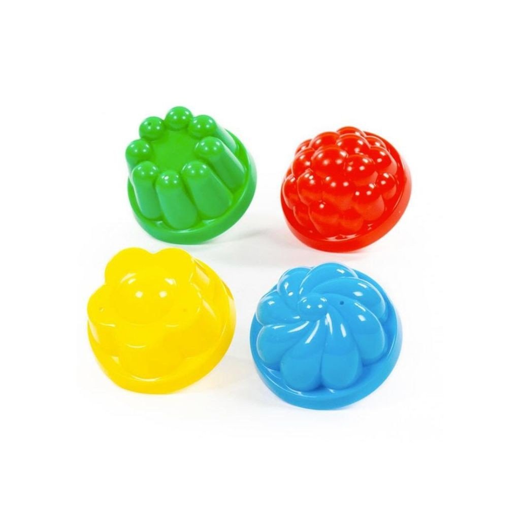 Sada čtyř formiček na písek umožňuje dětem vytvářet různé pískové tvary a stavby na pískovišti, zahradě nebo na pláži. Hra s formičkami podporuje kreativitu, fantazii i rozvoj jemné motoriky. Formičky se vyrábějí ve více barevných variantách, přičemž konkrétní barvu nelze vybrat a zasílá se náhodně podle dostupnosti.Doplňkové parametry