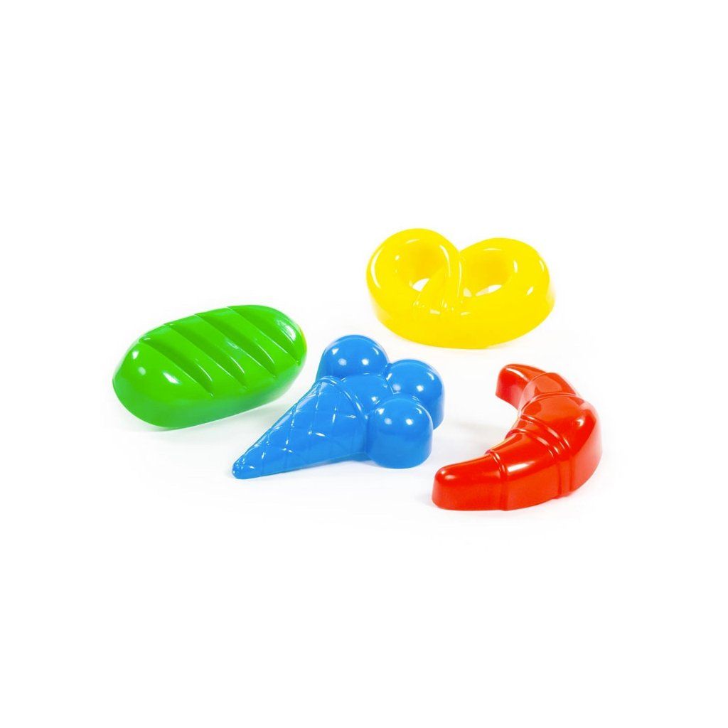 Formičky zmrzlina, v balení jsou 4 ks formiček 17 cm velkých ve tvaru zmrzliny, rohlíku, preclíky a koláče. Vyrobené jsou ve vynikající kvalitě značky Wader qality toys. Barevné kombinace jsou dle aktuálního stavu na skladě.Doplňkové parametry