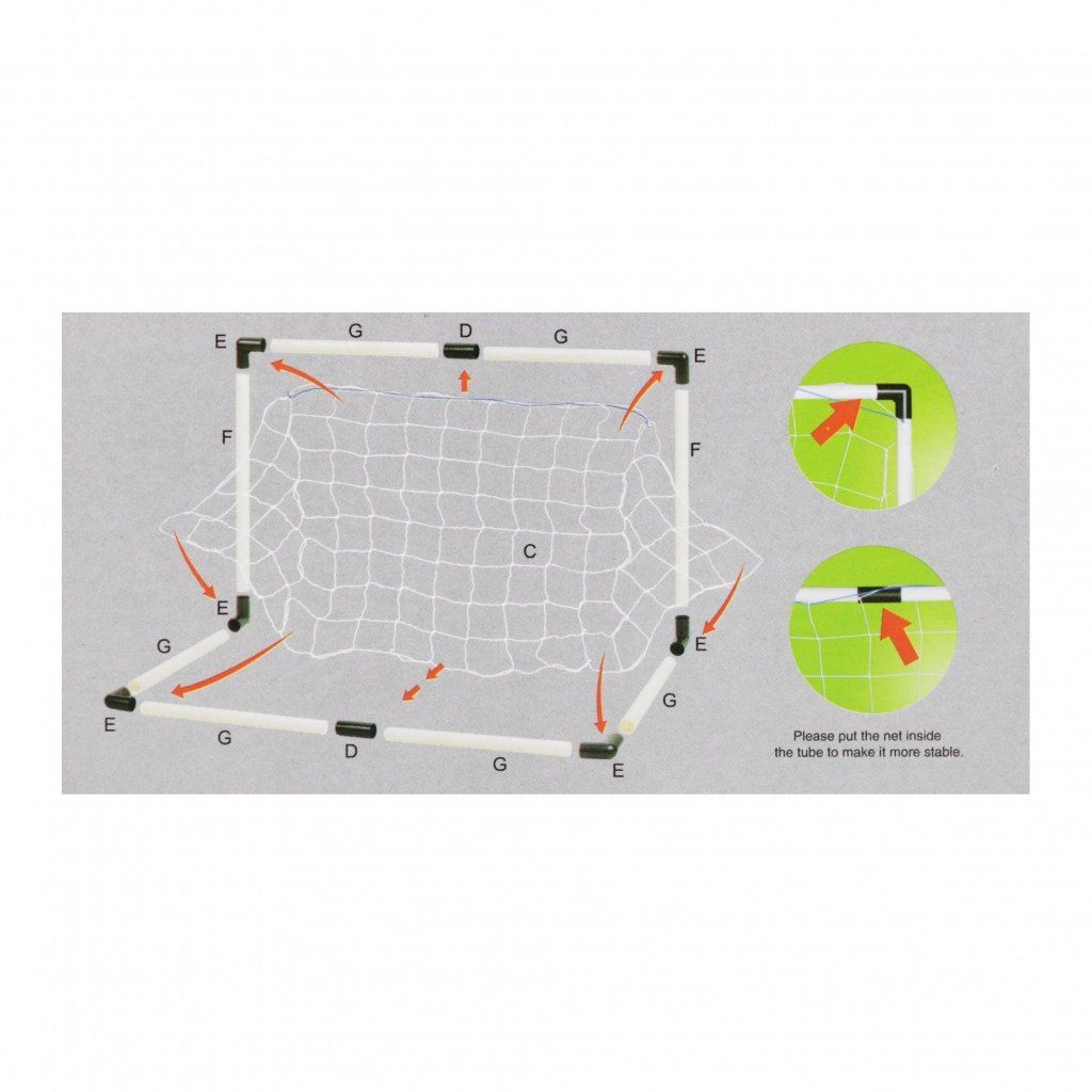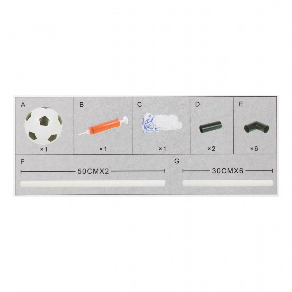 Dětská fotbalová branka se setem obsahuje vše potřebné pro hru včetně míče, pumpy a montážních doplňků, díky čemuž si děti mohou ihned užít sportovní zábavu. Stabilní konstrukce je vhodná pro použití doma i venku a podporuje pohyb, koordinaci i týmovou spolupráci. Ideální volba pro malé fotbalisty pro aktivní trávení volného času.Doplňkové parametry