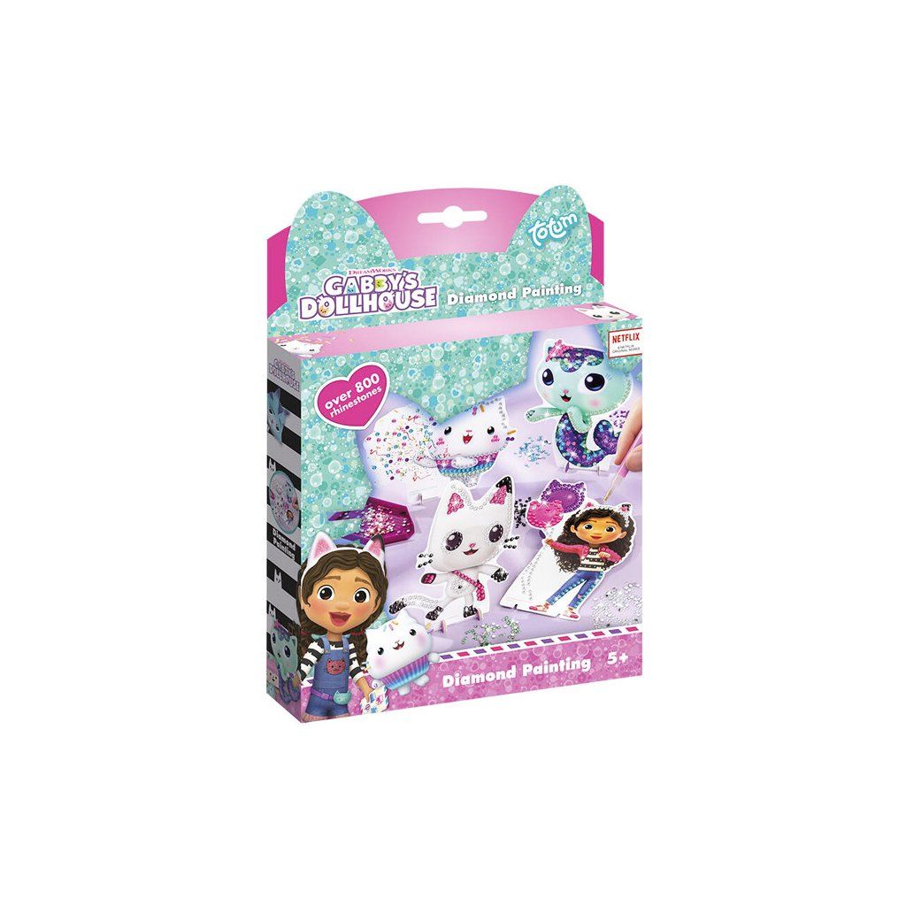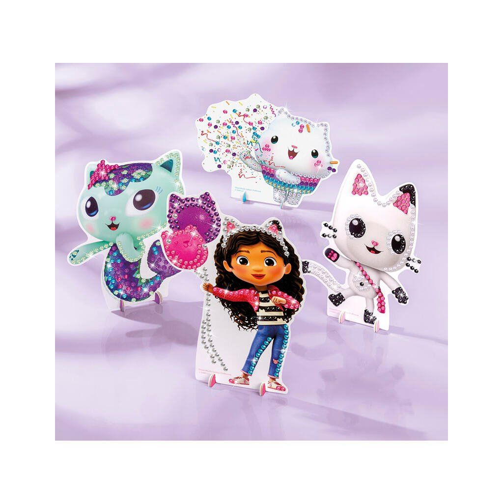 Gabby diamantové studio, ozdobte si oblíbené postavičky třpytivými kamínky. Set obsahuje více než 800 kamínků, 4 karty, aplikační pero na kamínky, vosk a zásobník, návod. Rozměry balení jsou 17,5 x 24,5 x 3,5 cm. Doporučeno pro děti od 5 let.Doplňkové parametry