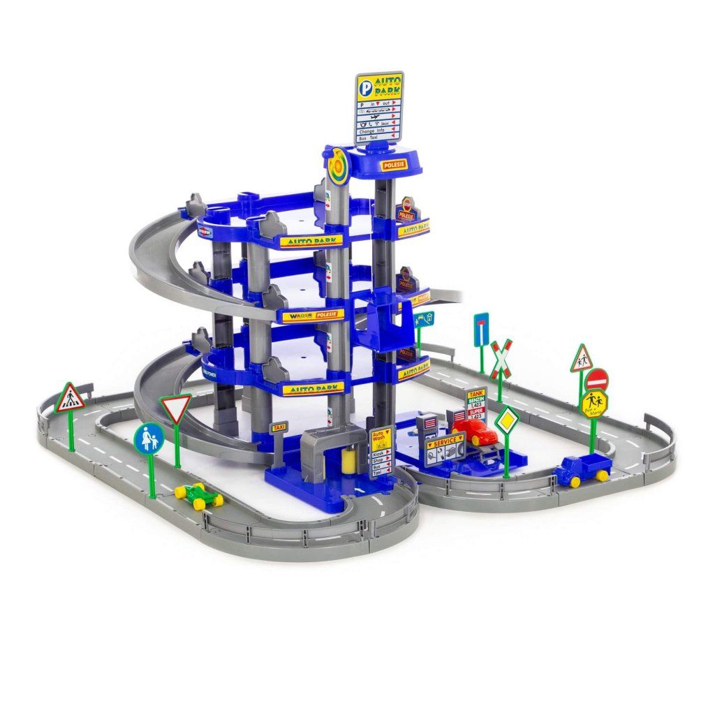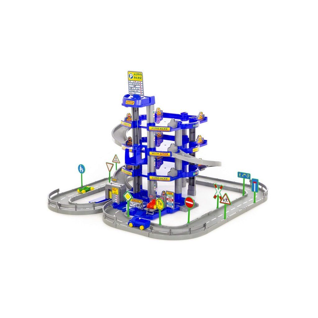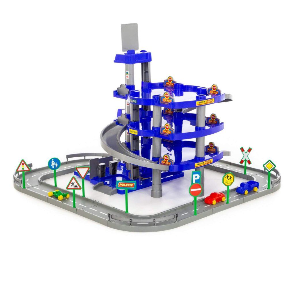 Garáž 4 podlaží s dráhou a auty