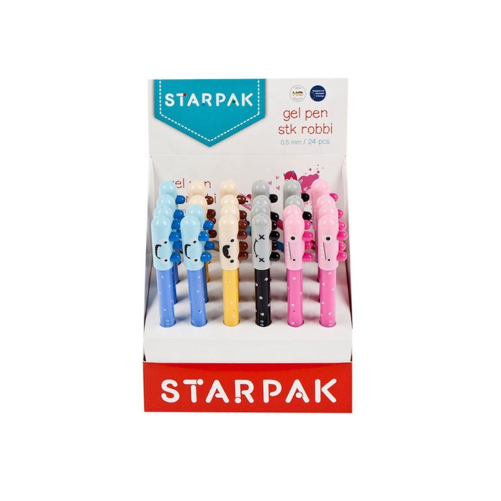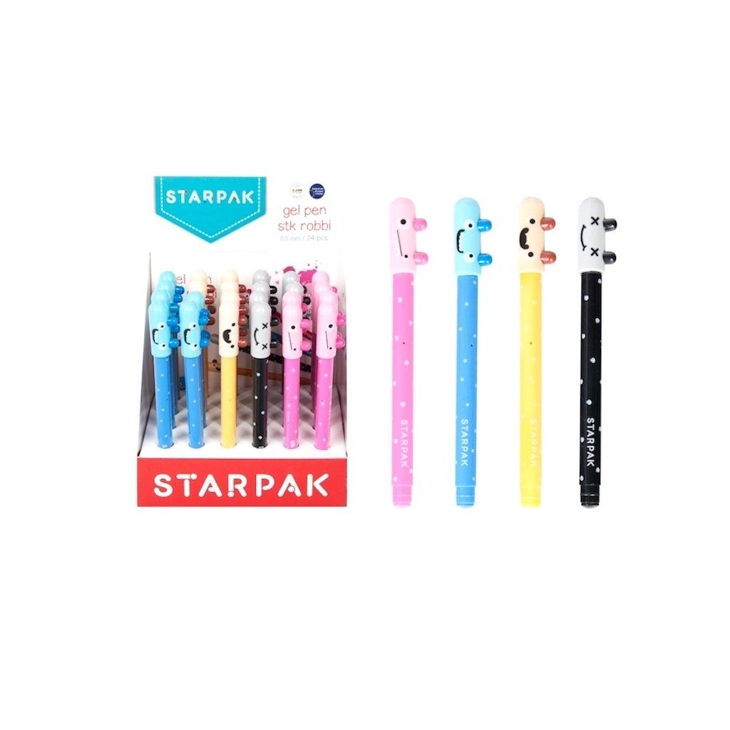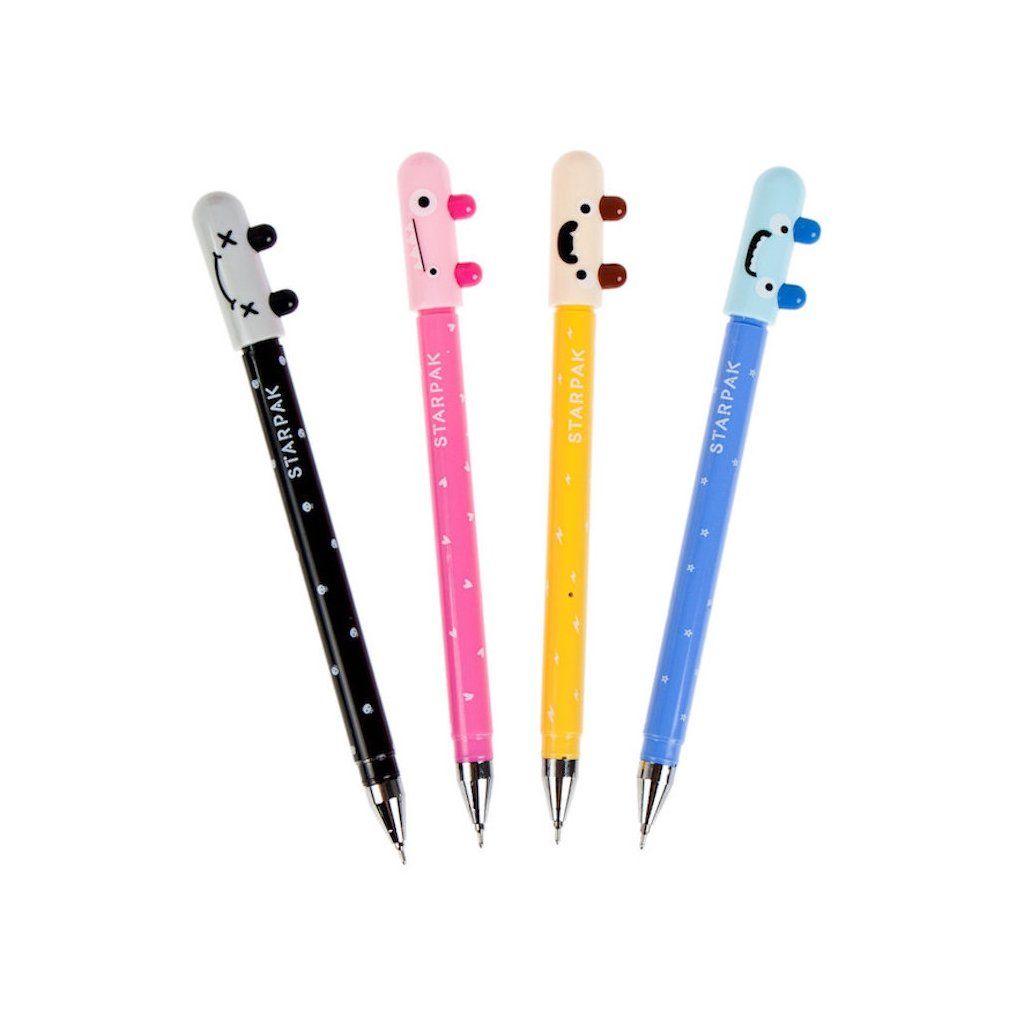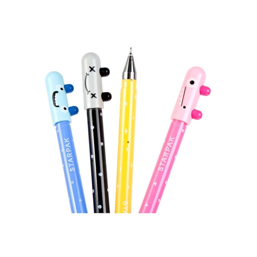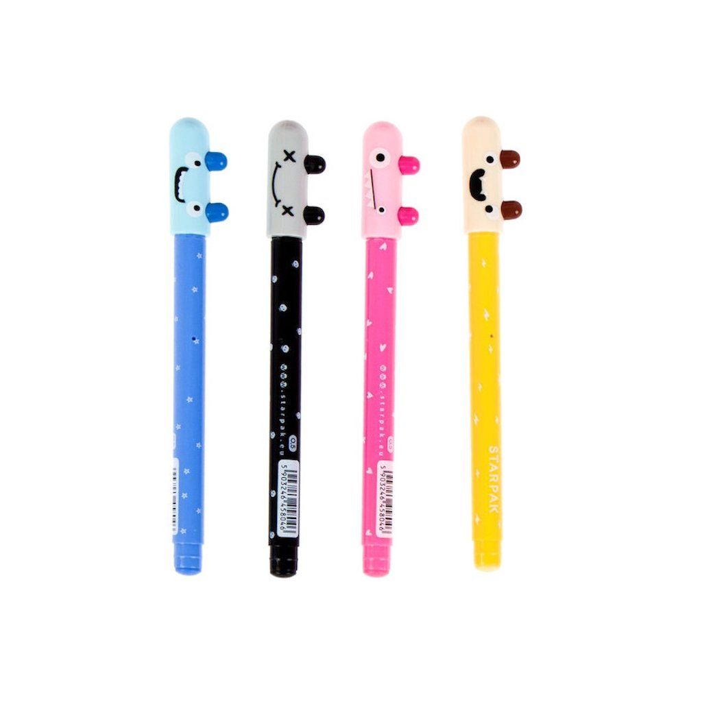Gelové pero se zátkou. Tloušťka písma - 0,5 mm. Dostupné v různých provedeních a barvách - růžová, černá, žlutá a modrá. Přátelské příšerky efektně zpříjemní chvíle strávené ve školní lavici.Doplňkové parametry