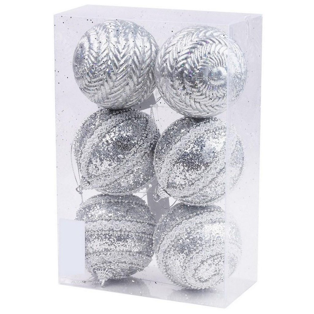 Cena za 1 ks: 247, GULE VIAN. POLYFOAM S/6 8CM STRIEBORNÉ MIX3