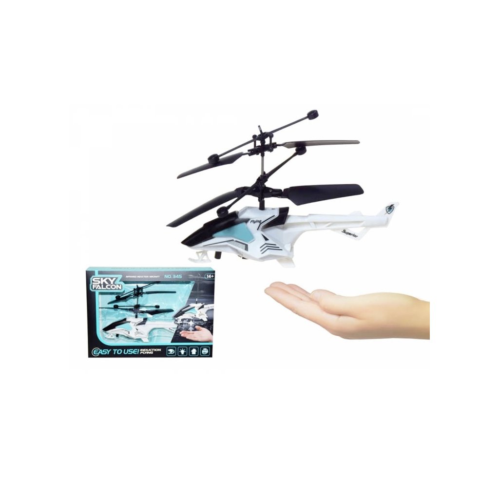 Už žádný ovladač. Helikoptéra, kterou ovládáš jen rukou. Hračka vyžaduje 3,7V bateriový pack, který je součástí balení. Uchop helikoptéru jednou rukou za podvozek a přesuň vypínač do polohy ON. Rotory se roztočí po dobu 4 sekund a helikoptéra má tendenci zvlétnout. Pusť ji, ta mírně vzlétne a vzápětí výkon mírně poklesne. Vlož dlaň pod letící helikoptéru a výkon vzroste. Pokud chceš ukončit let, nech helikoptéru klesnout do vhodné výšky, uchop ji za podvozek a přesuň vypínač do polohy OFF. Nevhodné pro děti do 3 let.Doplňkové parametry